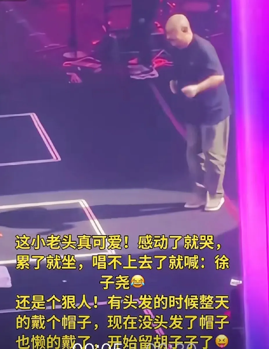 南京演唱会上 一位网友对刀神的调侃 说这小老头真可爱 感动了就哭,累了就坐 唱不上去就喊:徐子尧 而且还是个狠人,有头发的时候整天戴个帽子, 现在没头发时帽子也懒得戴了,直接留胡子 听他们这样一说,好像还真是的哈,好多歌手都开过演唱会,感觉他们都是千篇一律的,只觉得刀神才是万里挑一,显得那么独特, 你们觉得呢?