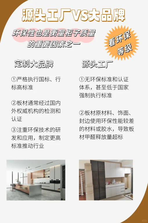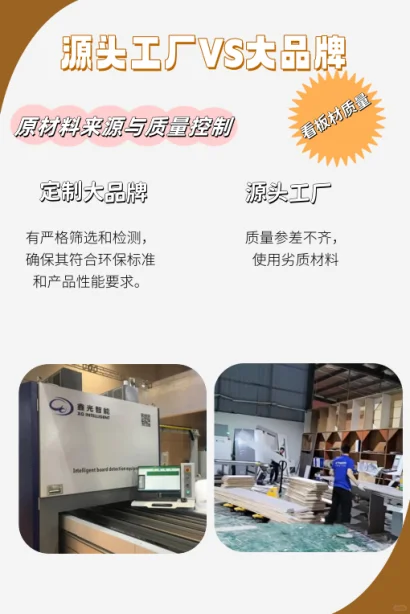 从板材质量、五金配件、生产技术和环保性等方面来看,源头工厂生产的柜子在质量方面不如大品牌。选择全屋定制,一定不能光看价格,而是要综合考虑产品的品质和耐用性。毕竟,一个耐用且美观的柜子不仅能够提升家居的整体品质。