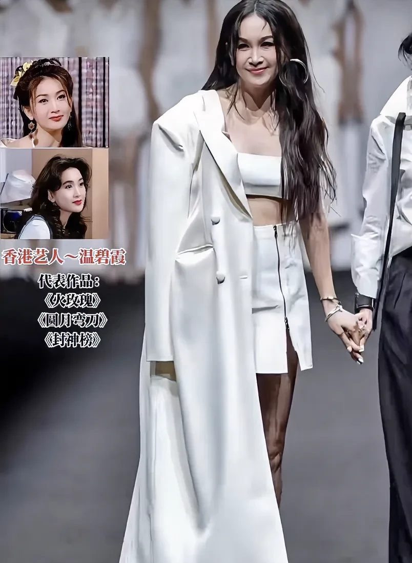 我一直不太理解温碧霞为什么不肯接受自然老去的原因,直至看到她最近在深圳走秀时的视频,才发现真的不忍直视,她还是披着一如既往的发型,还有那满脸皱纹,给人一种很怪异的感觉,戴着大大的耳环,穿白色抹胸和超短裙,肩膀搭着白色长风衣,脖子前倾得特别厉害,看起来都有些驼背了。