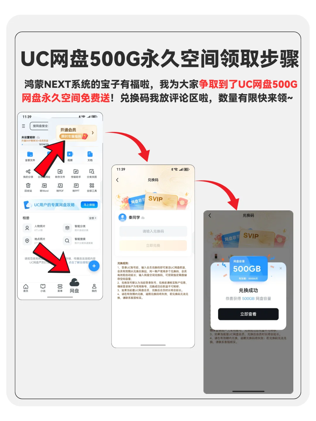 我还为下载了纯血鸿蒙的朋友争取到了惊喜福利噢,复制评论区的兑换码后上UC领取限量 500G 的永久空间,这对于有存储需求的用户来说,无疑是一个巨大的惊喜。还没领取的小伙伴们,可不要错过这个好机会,赶紧按照步骤领取吧![电影R][电影R][咖啡R][咖啡R][啤酒R]