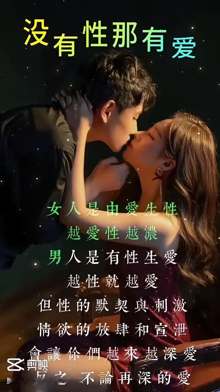 男女关系里,性与爱可分不开。夫妻或者情人,只要是异性关系,就不能不重视性。女人往往因爱而性,爱得越深性就越浓烈。男人呢,多是有性才生爱,性越多爱得越深沉。性要是默契又刺激,情欲能肆意宣泄,两人的感情就会越来越深。反过来讲,不管爱得多深、情多浓烈,男女之间要是没了性的维系,感情就会慢慢变淡,最后只能好聚好散了。