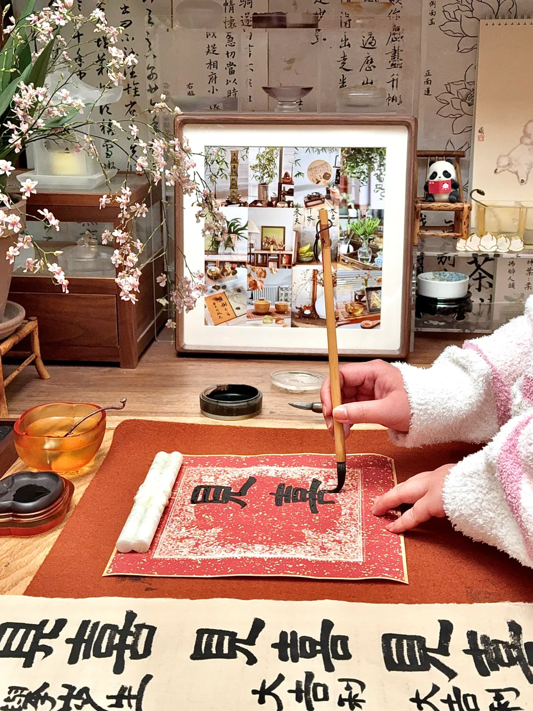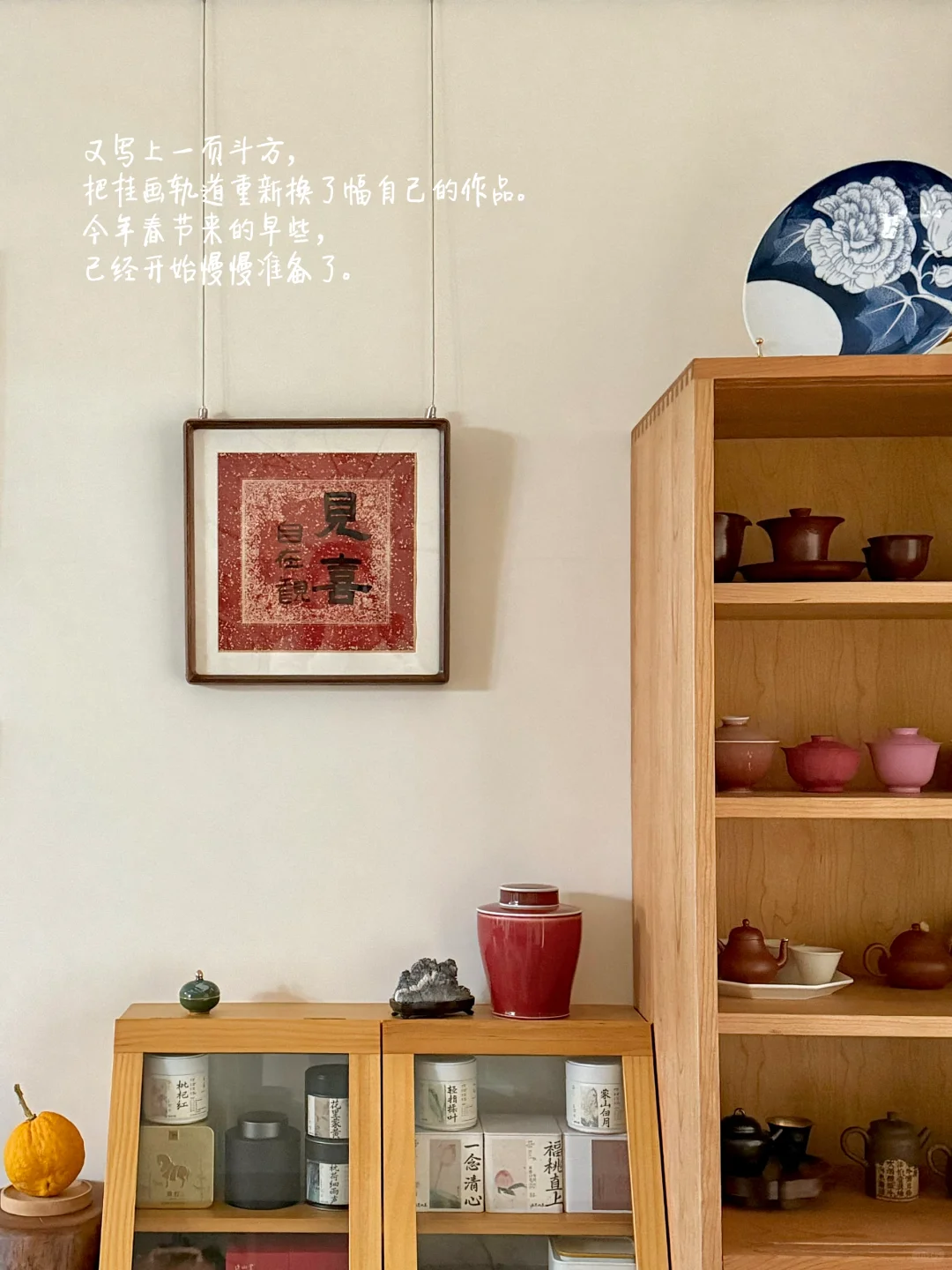又写上一页斗方,把挂画轨道重新换了幅自己的作品。今年春节来的早些,已经开始慢慢准备了。