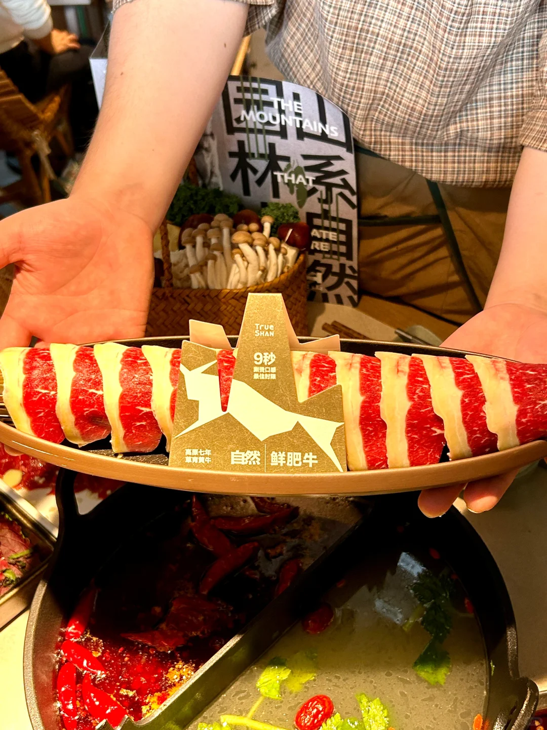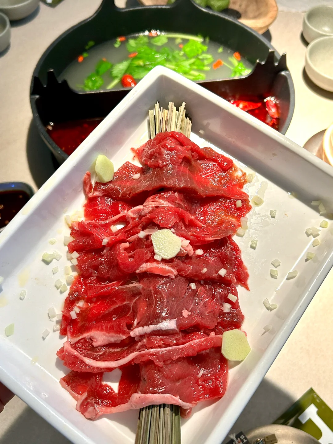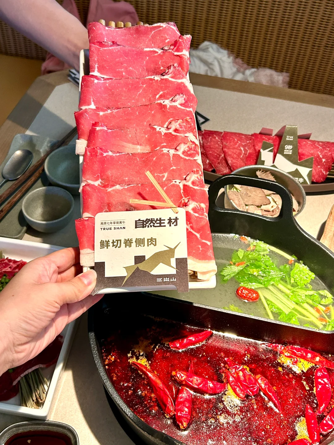 ✔️牛肉 鲜雪花、鲜肥牛、紫苏牛肉都品质超好,纹理清晰可见,涮几秒就可以吃啦~