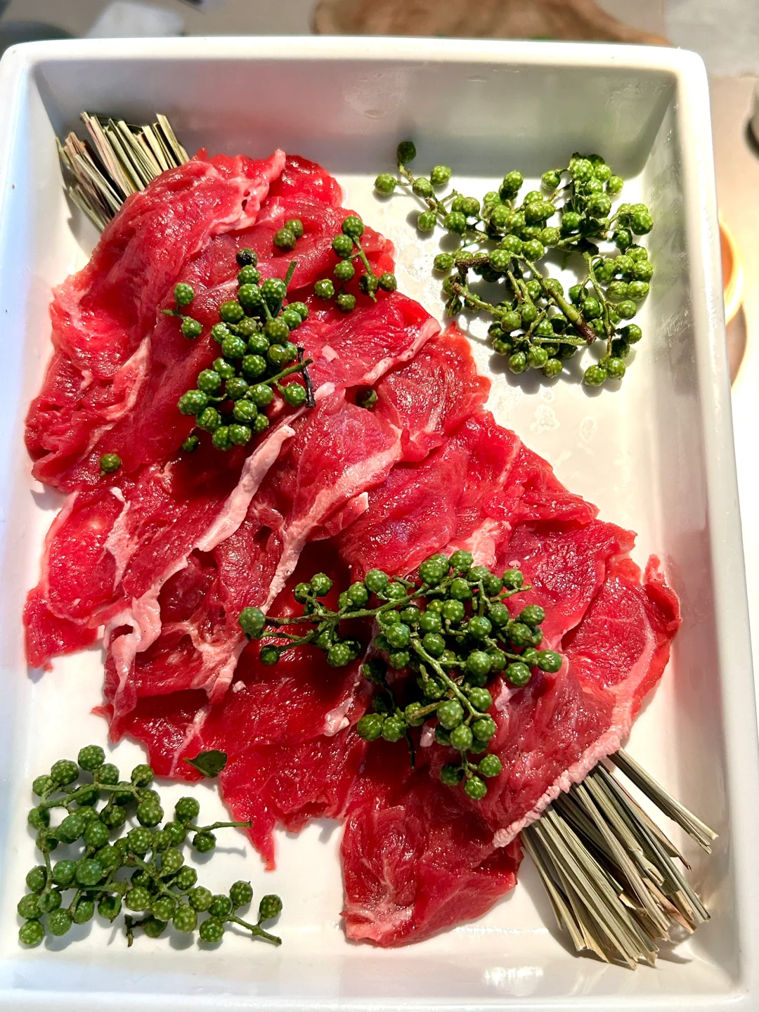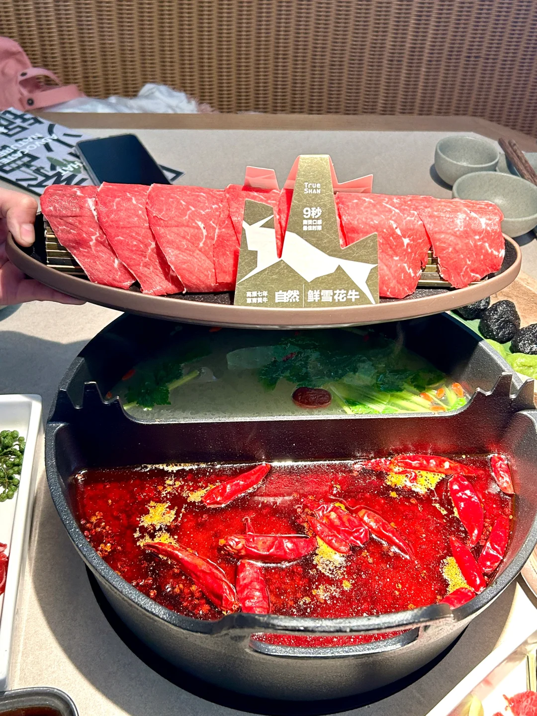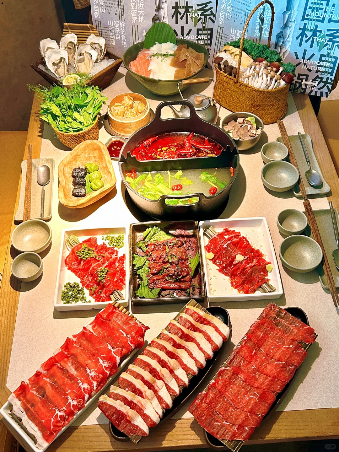 ✔️牛肉 鲜雪花、鲜肥牛、紫苏牛肉都品质超好,纹理清晰可见,涮几秒就可以吃啦~
