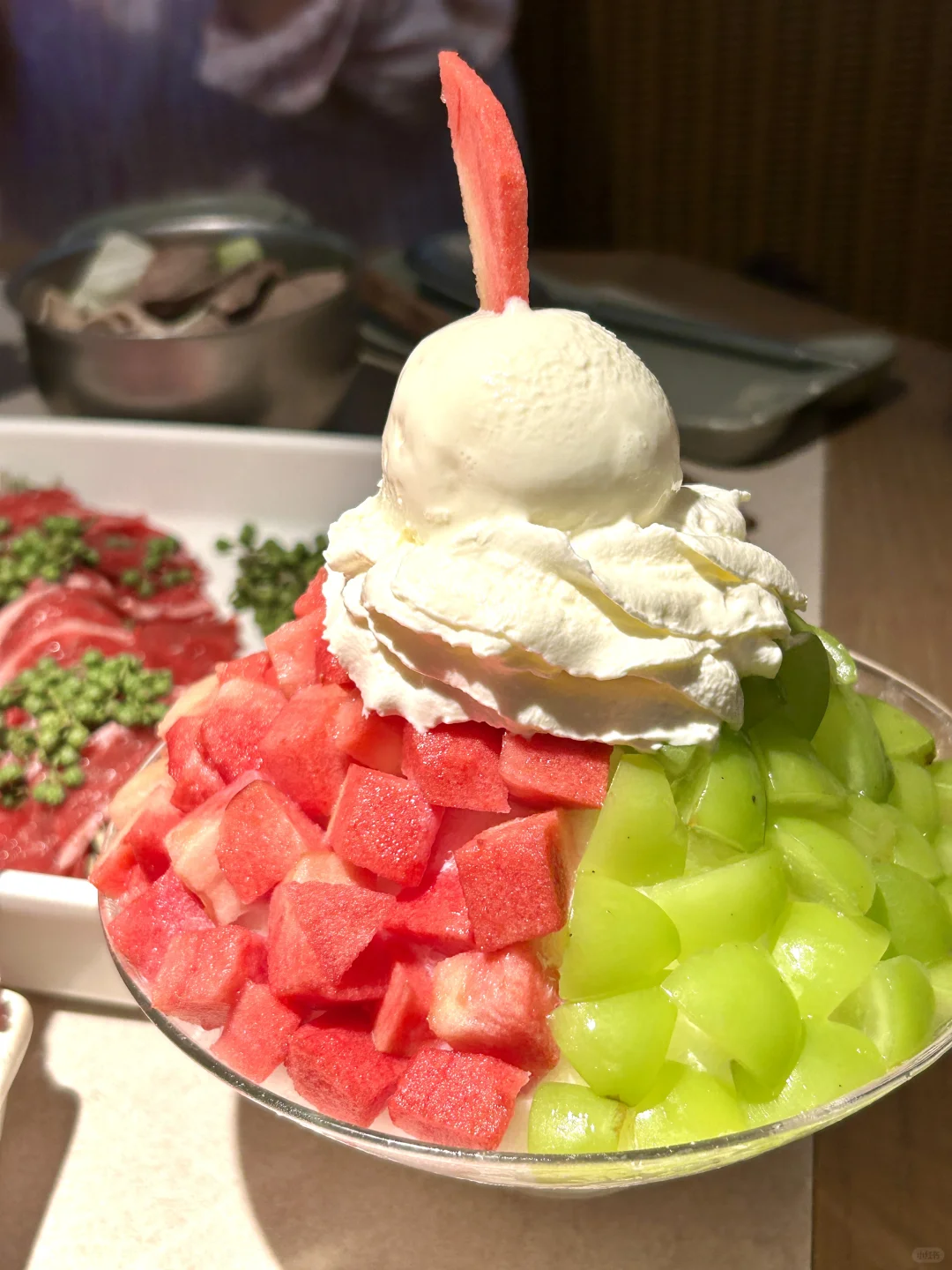 ✔️甜品 三色牛奶冰采用新鲜水果手作而成,青提+红苹果+人参果,奶味十足,水果和刨冰一起吃尊嘟好过瘾🥰