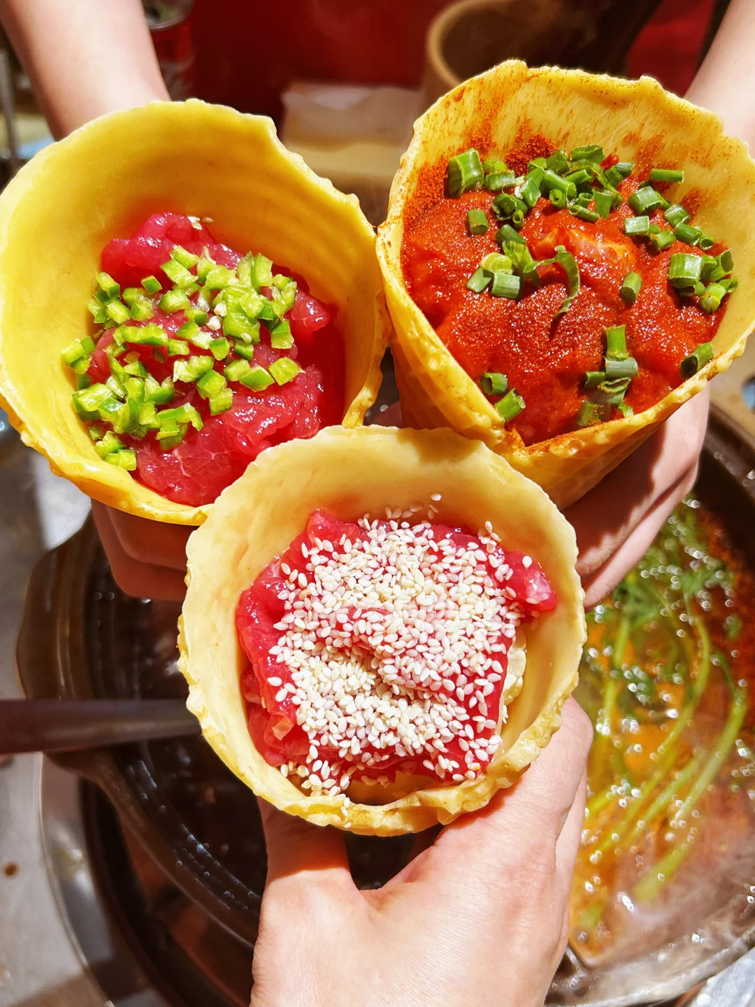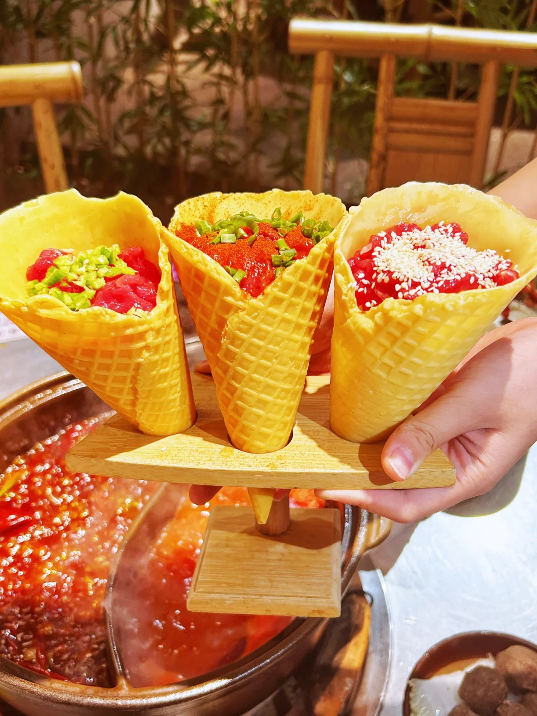 ✔️冰激凌筒的造型里装的牛肉,造型独特,肉质细嫩,而且是三种不同口味
