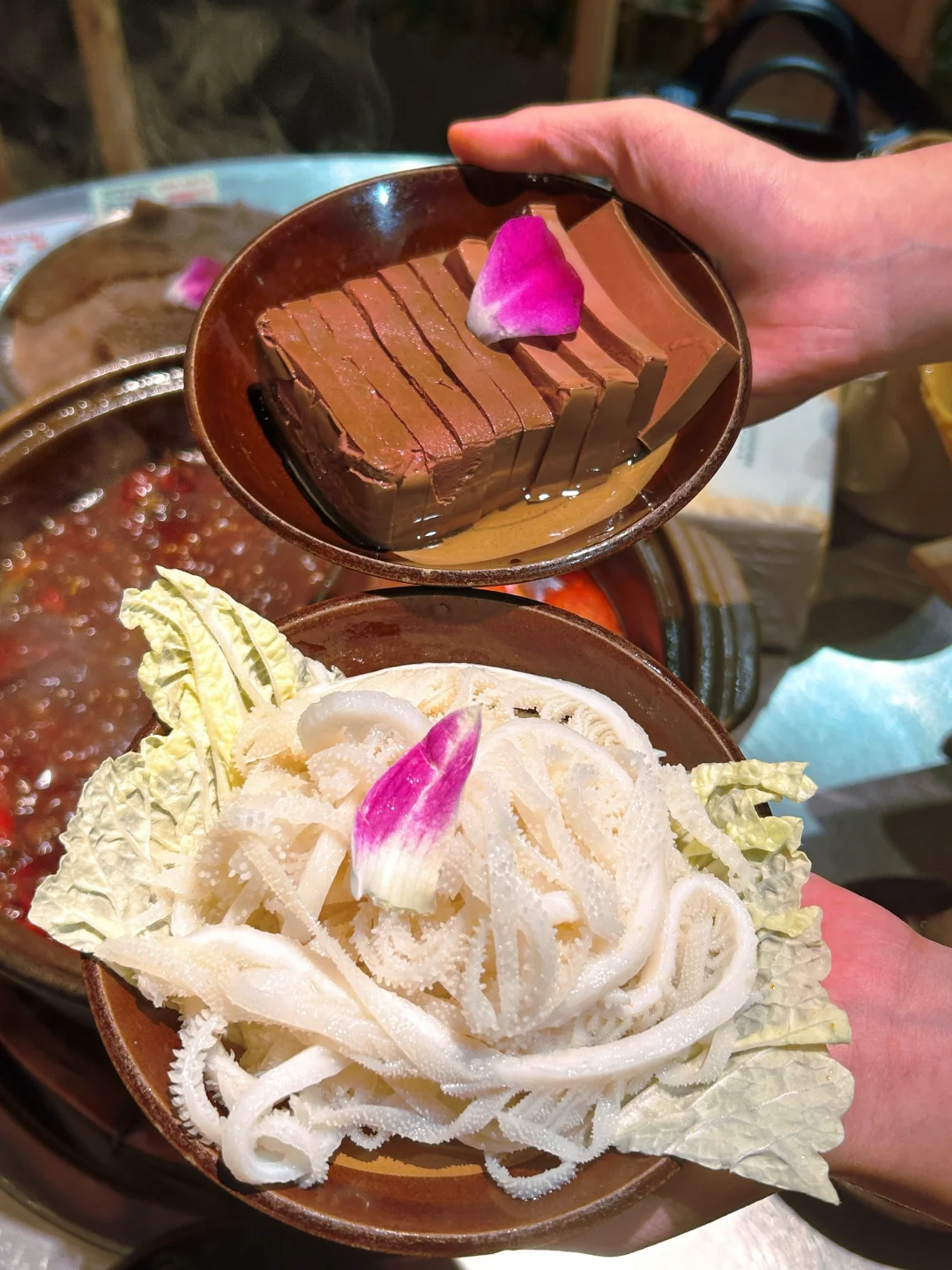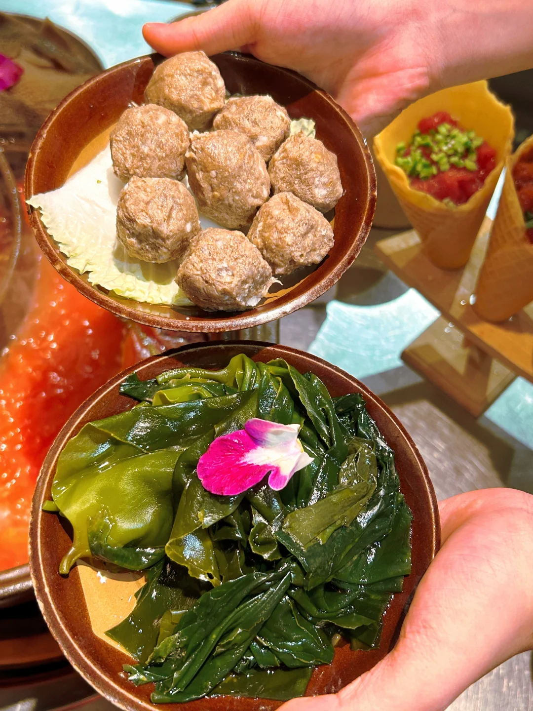 ✔️毛肚、百叶、鸭血、牛肉丸、海带苗都很新鲜好吃