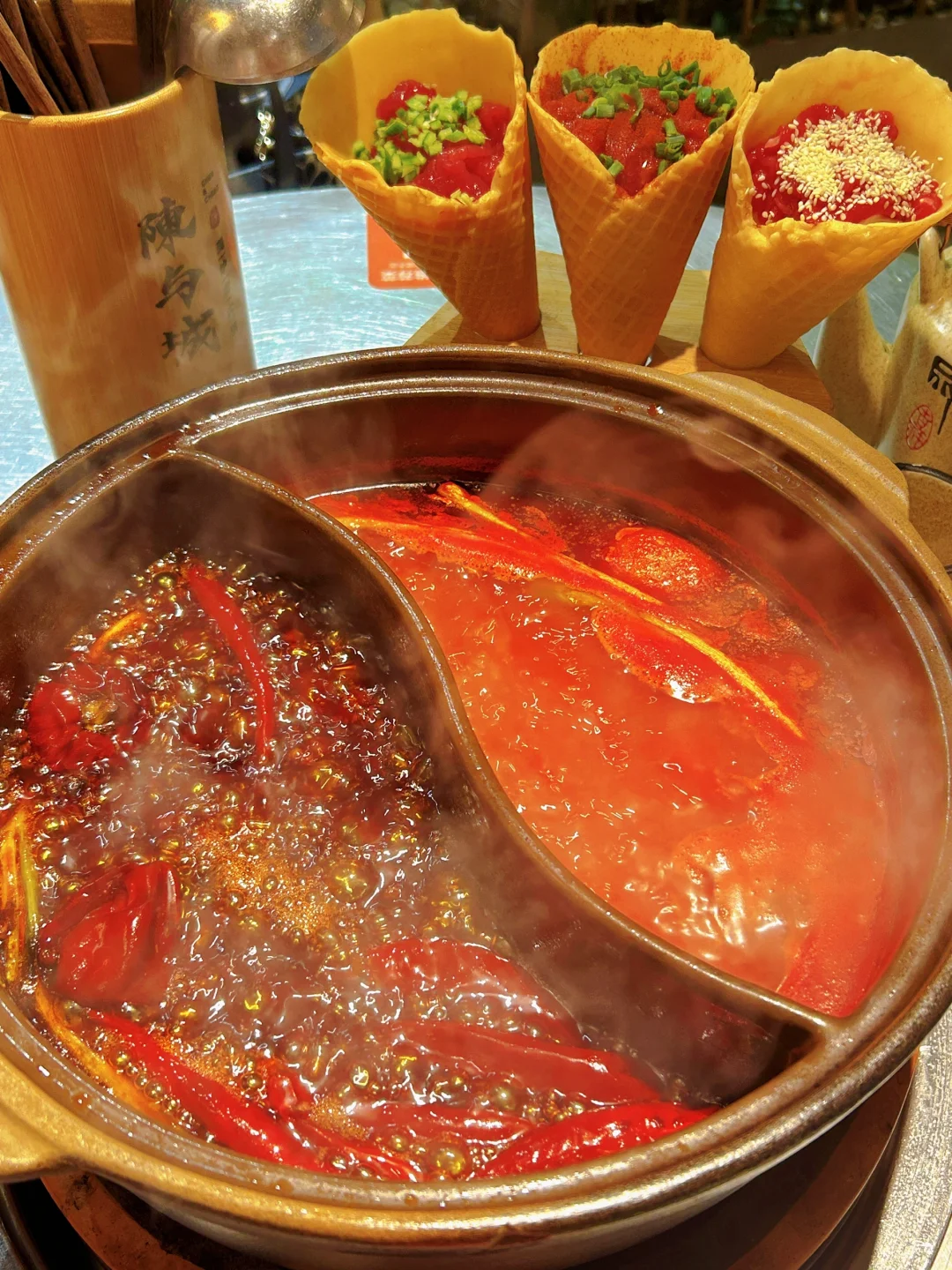 ✔️鸳鸯锅:涮菜完全不需要小料,很入味