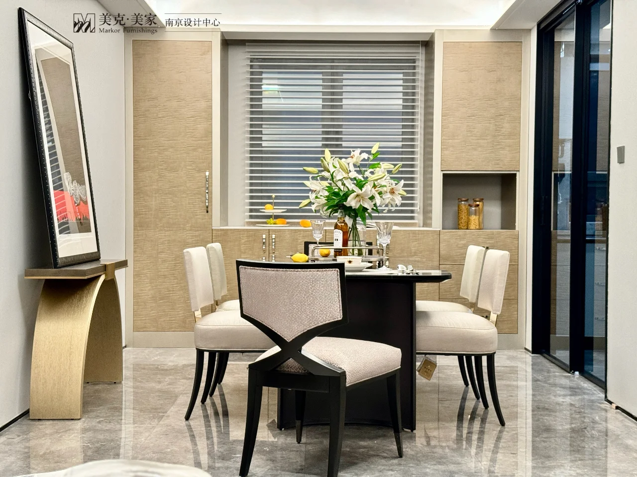 材质的选择也很关键。会大量使用大理石,它的纹理自然且有质感;金属也是常用元素,如黄铜的灯具边框、不锈钢的装饰线条,展现出精致与华丽;还有皮革,皮质沙发或座椅柔软舒适又显档次。