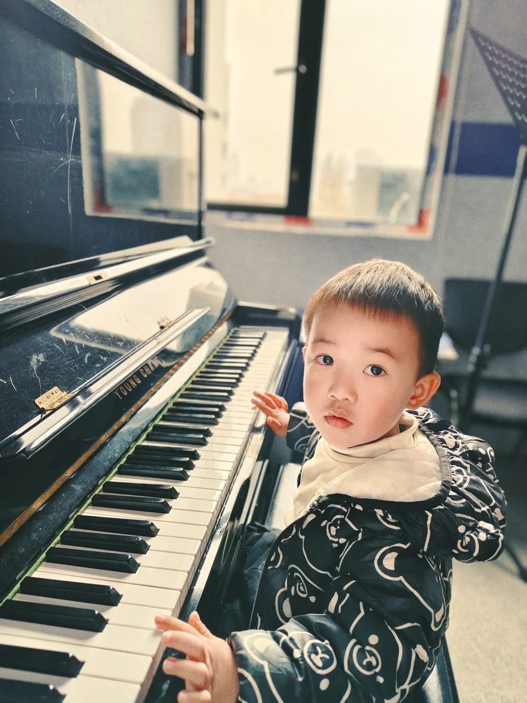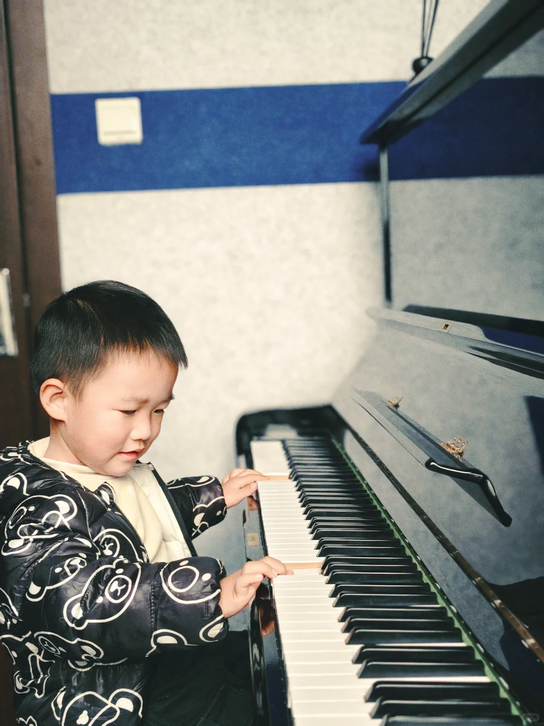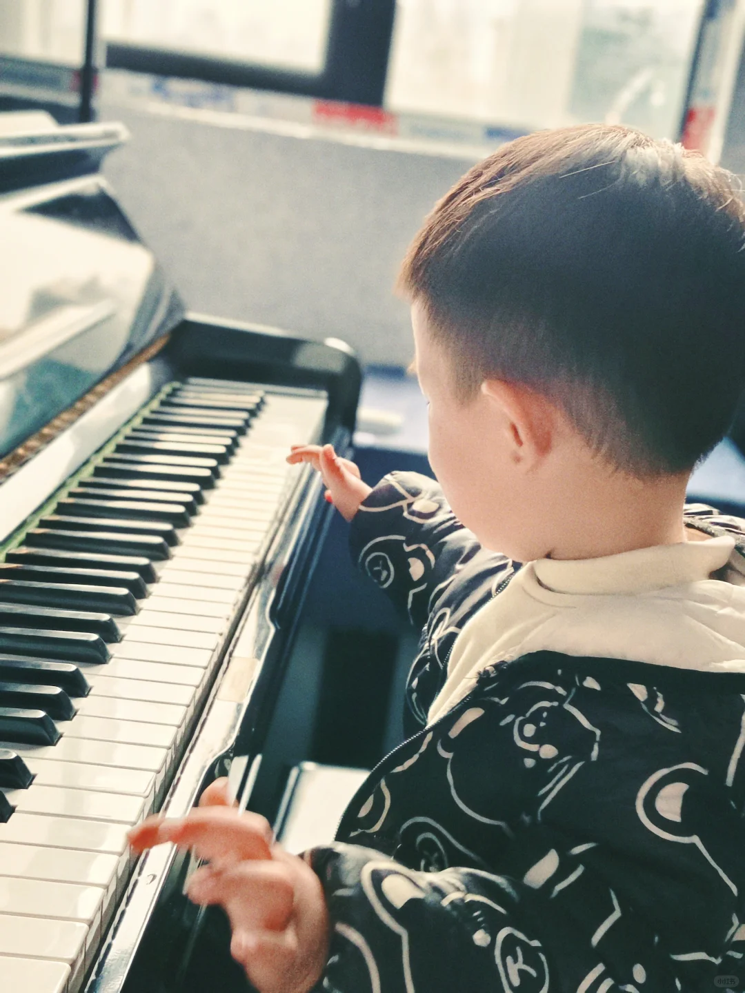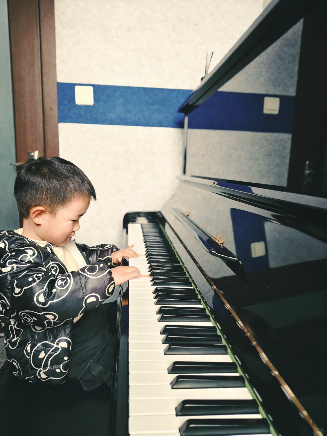 陪姐姐学古筝,有架钢琴,弹着玩儿