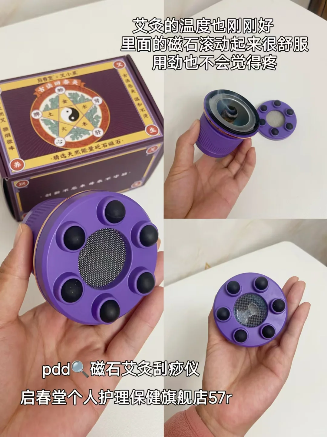 1.磁石艾灸刮痧仪,里面的磁石滚动起来很舒服,用劲也不会觉得疼