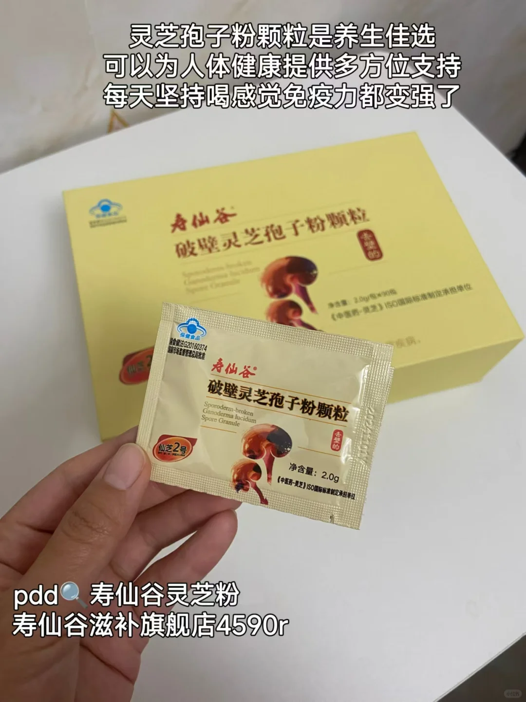 4.寿仙谷灵芝粉颗粒,它源自高品质灵芝,灵芝多糖、三萜类化合物,不赘述了,冬天喝,每天一袋,温水冲服,简单方便。