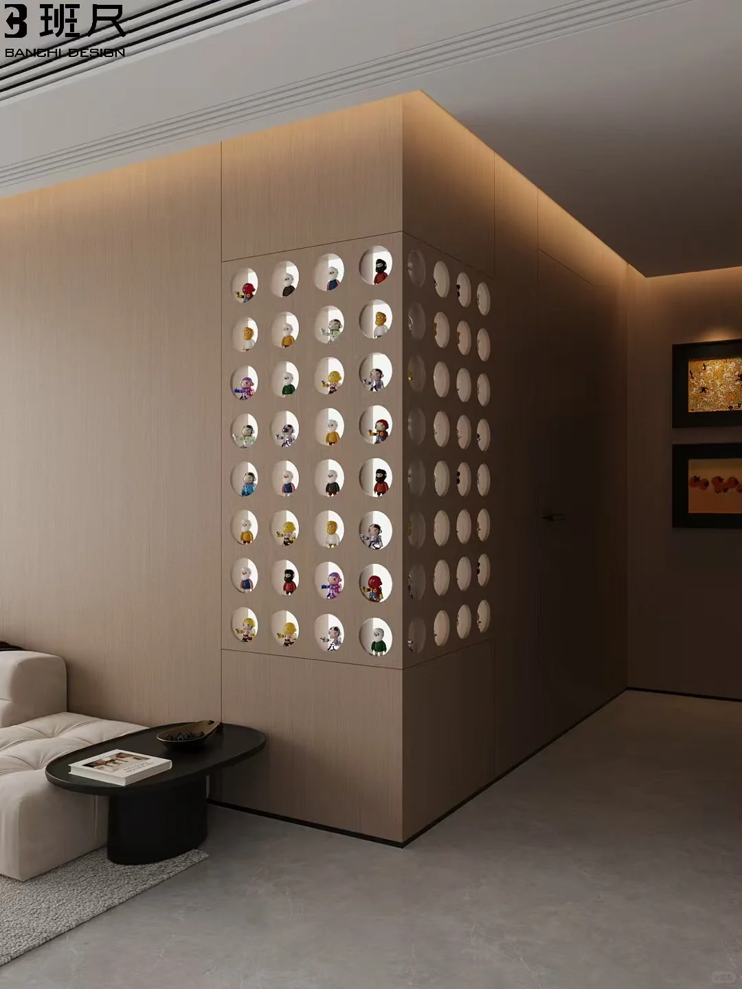 设计出自:龙岩·班尺设计 邂逅盲盒柜,如踏入神秘的奇境入口。 柜体的线条流畅优雅,多层的布局疏密得当,给予每个盲盒恰到好处的栖息之所,从此告别杂乱无章。个性空间打造 空间设计 盲盒柜 设计灵感 全屋设计 内置的柔和灯光,像是破晓时分的朦胧曙光,悄然点亮盲盒们的精致细节,召唤着你去探索其中的奥秘。 盲盒柜是梦想与惊喜的收纳盒,是开启无限可能的魔法之门,时刻准备着为你呈上生活中最甜蜜的小确幸