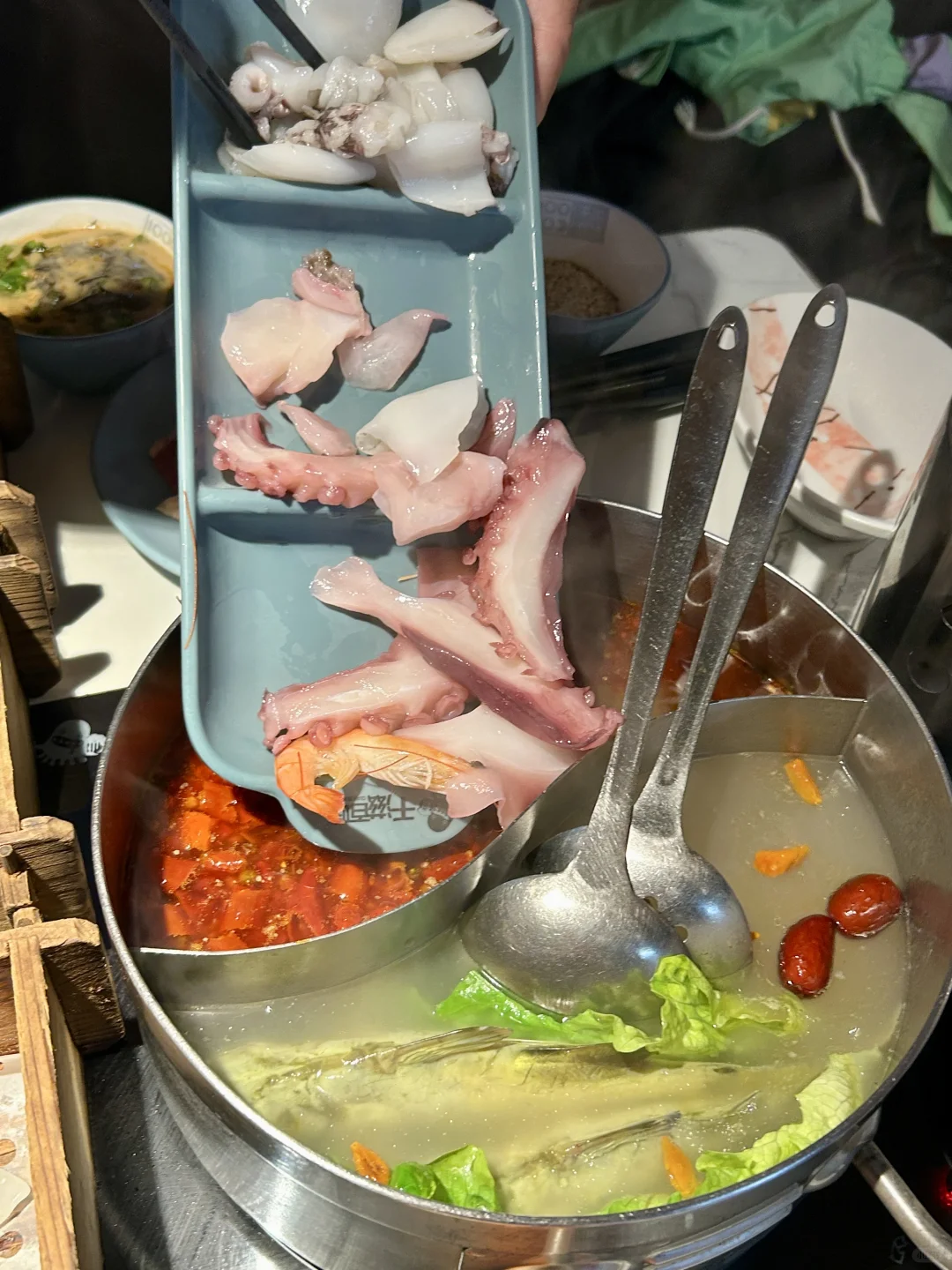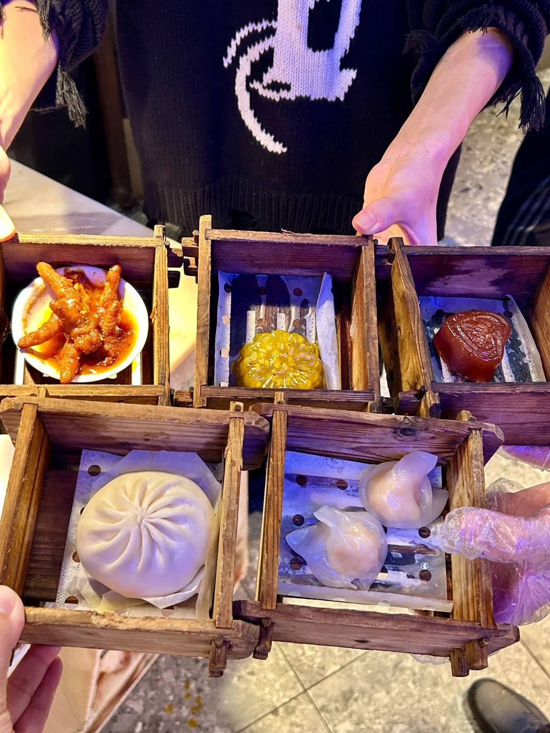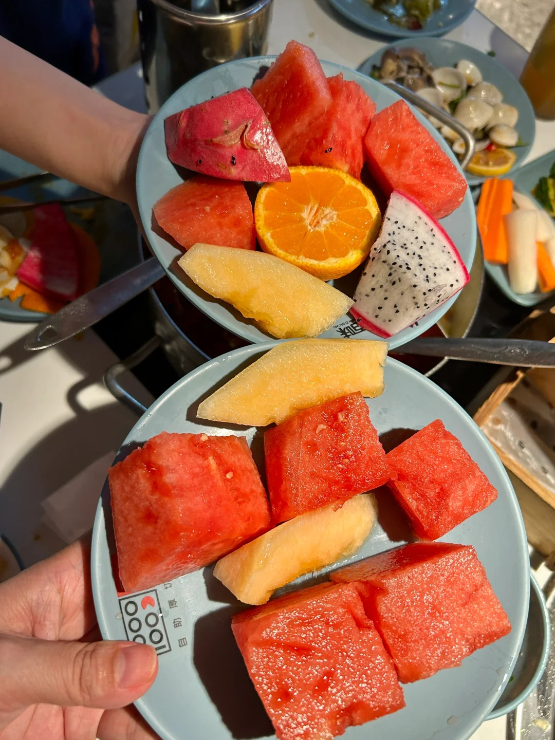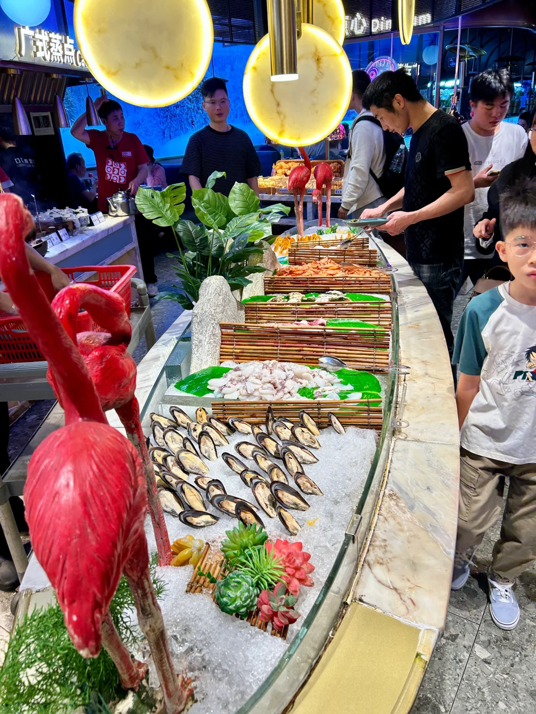 和前面两家一样,海鲜火锅+烤肉自助,各种水果、蛋糕、酒水饮料也是想吃什么随便拿。不同的是,这家旗舰店新增了早茶系列,凤爪、虾饺、桂花糕、红枣糕、包子、糯米鸡等等各种茶点在这里都可以吃到,感兴趣的可以来品尝😋