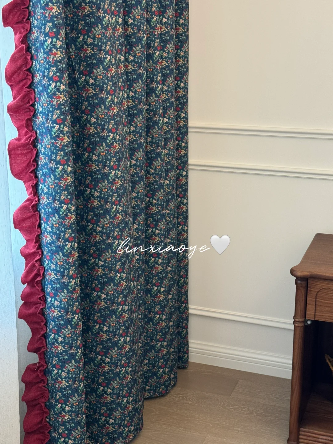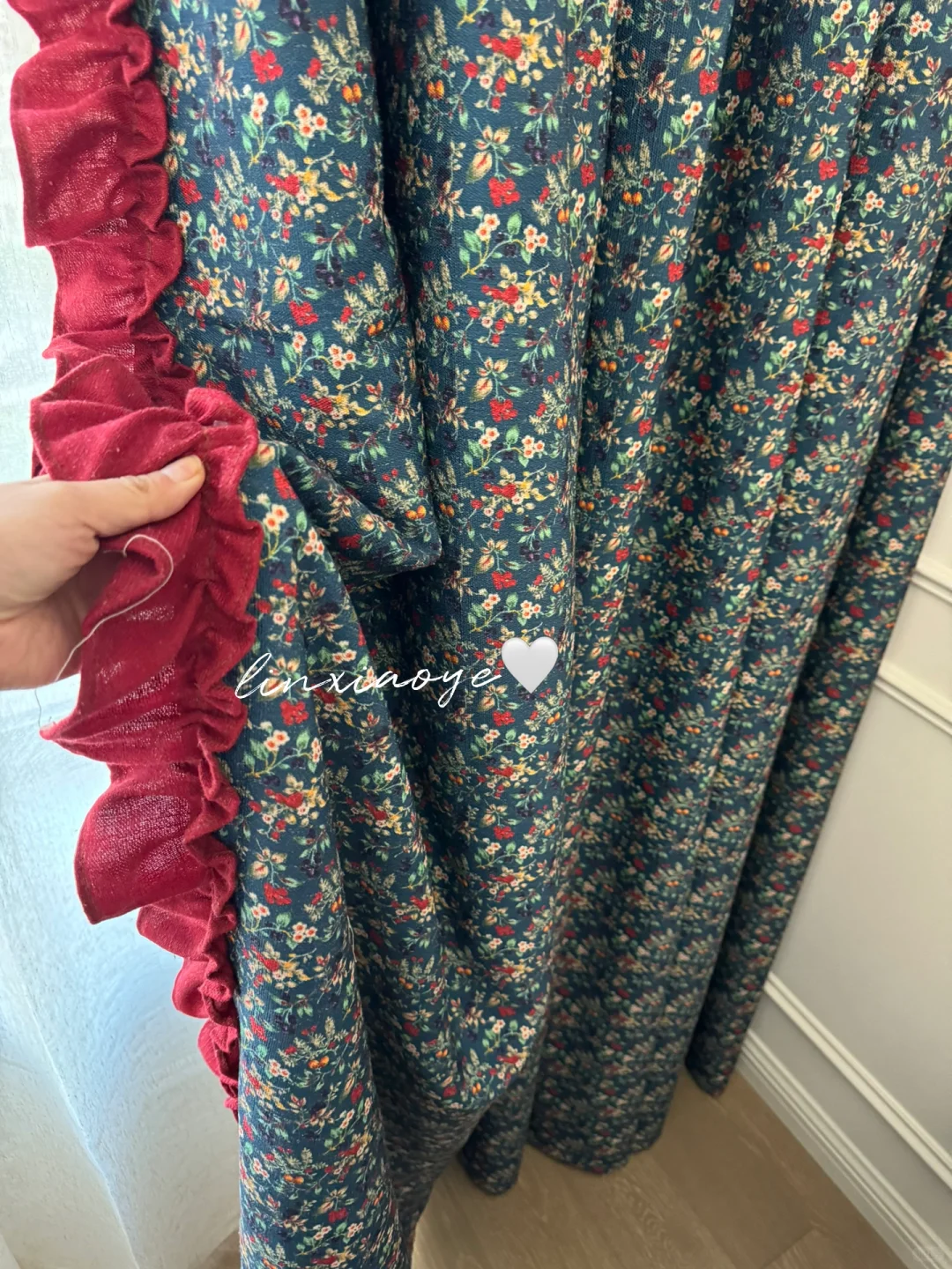 淄博金地华著 .新案例 复古亚麻粗布搭配圣诞红手工木耳边 人见人爱的复古花布窗帘🌷