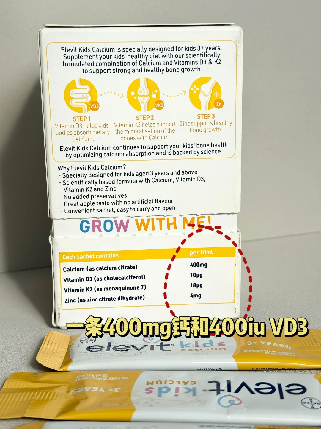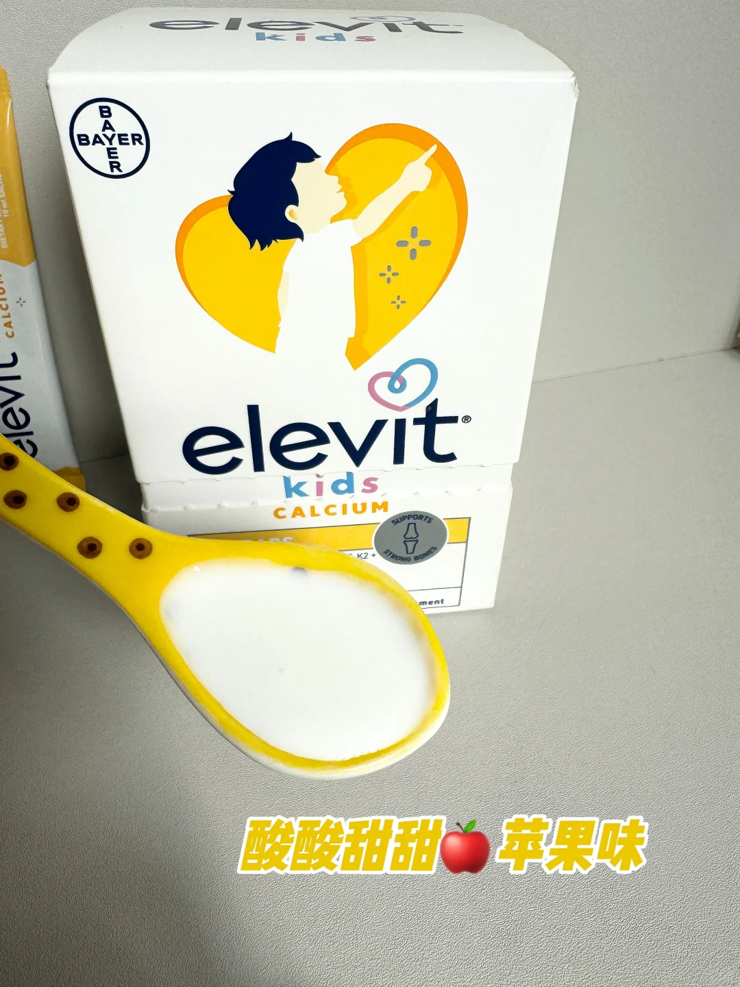 不过现在买了爱乐维儿童钙之后就太省心了,吃这一条就能把钙和vd3都补充了,而且还特别好喝,酸酸甜甜的苹果味,口感特清爽,像酸奶一样喝完都不用漱口,我家孩子可喜欢了💓