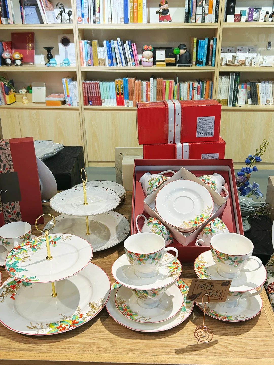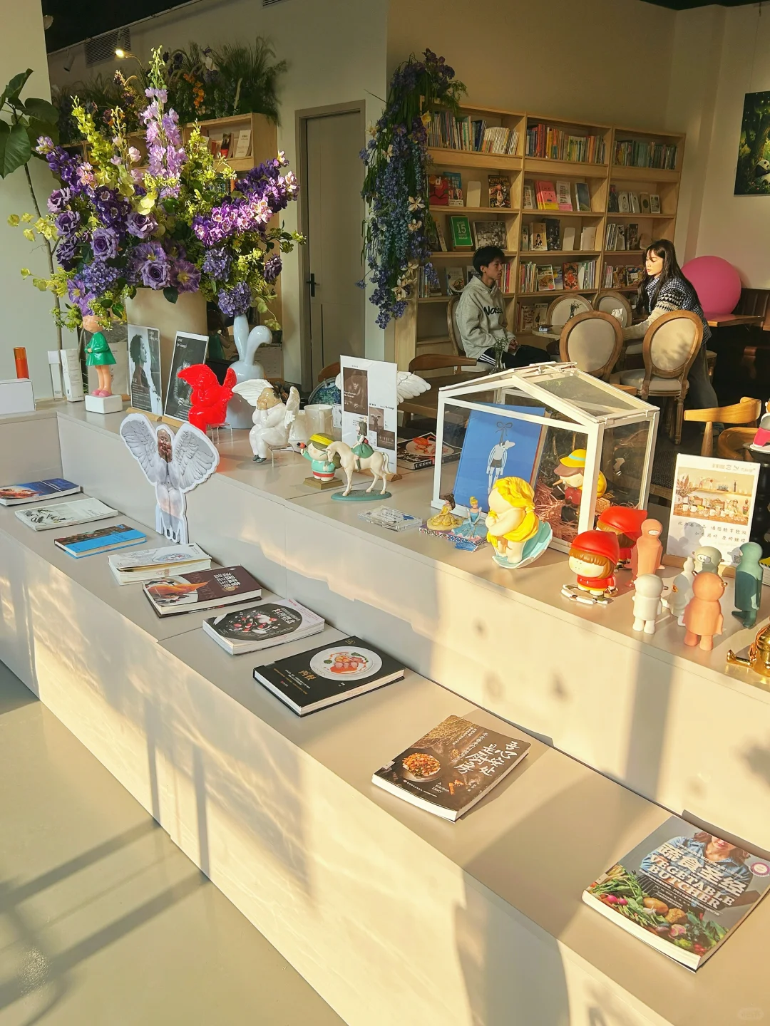 摆满了各种书籍📚艺术品和售卖品