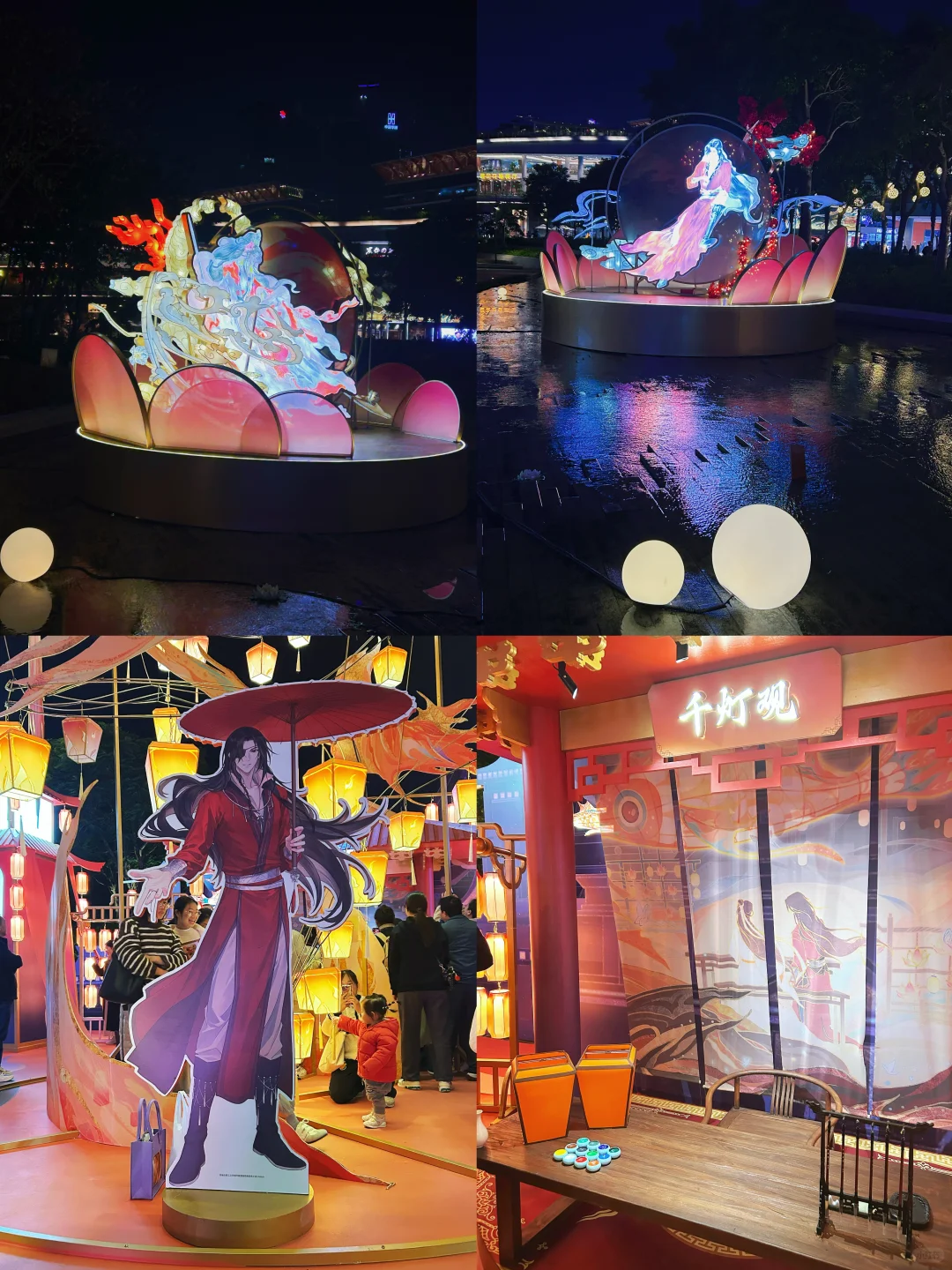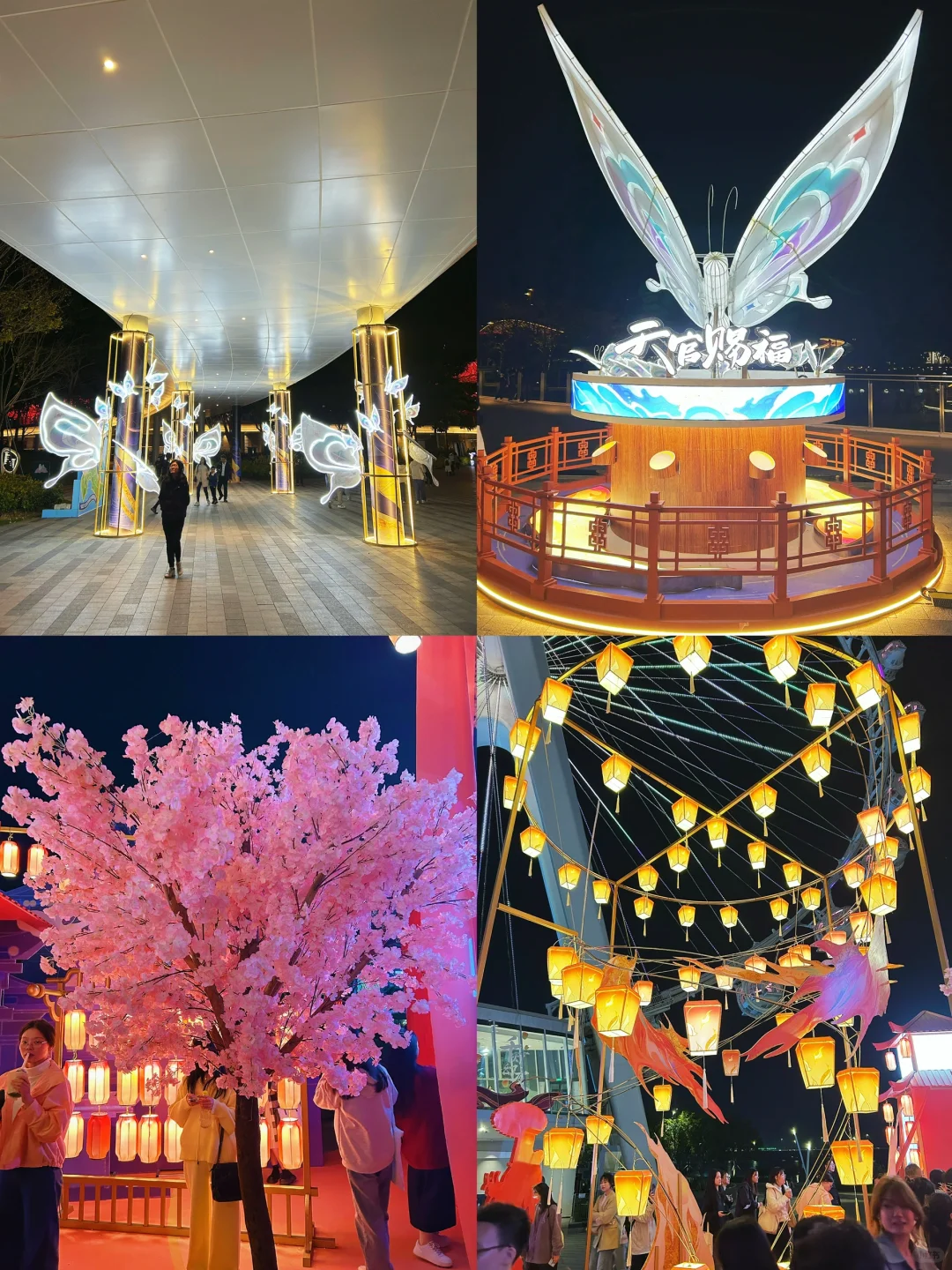 各种绝美美陈赏心悦目:【灵蝶引路】、【天韵瓷福花灯组】、【红帘相映】、【玲珑祈福】、【千灯观】、【明灯三千】和【悦神游】,使得欢乐港湾节日氛围更加浓厚🏮