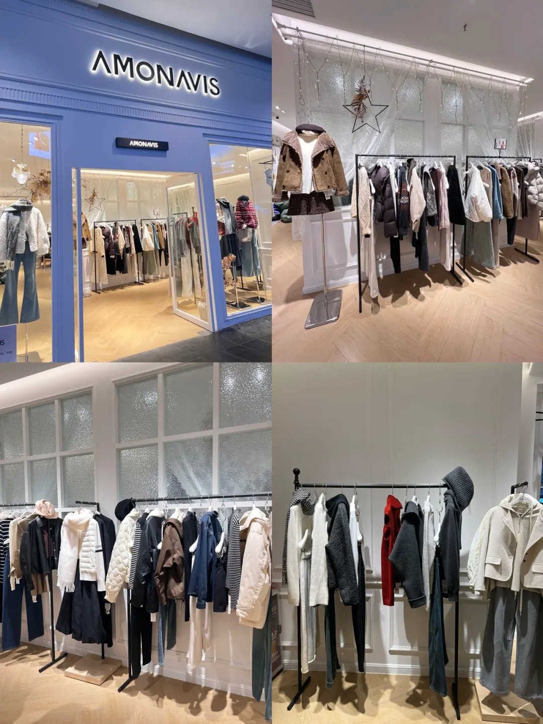 女装店AMONAVIS 【依我之见】白色橱窗很吸引人🤩店里装修简约大气,服饰基本都是小清新配色,各种款式玲琅满目,进店就开始挑选试穿,最后就是满载而归啦🛍️