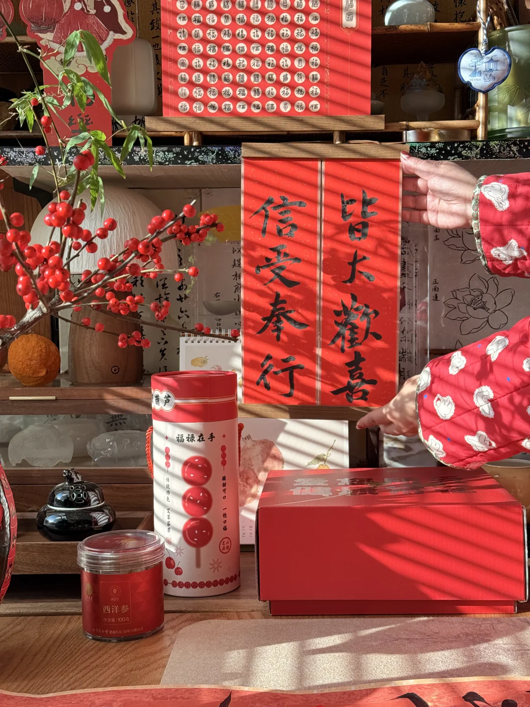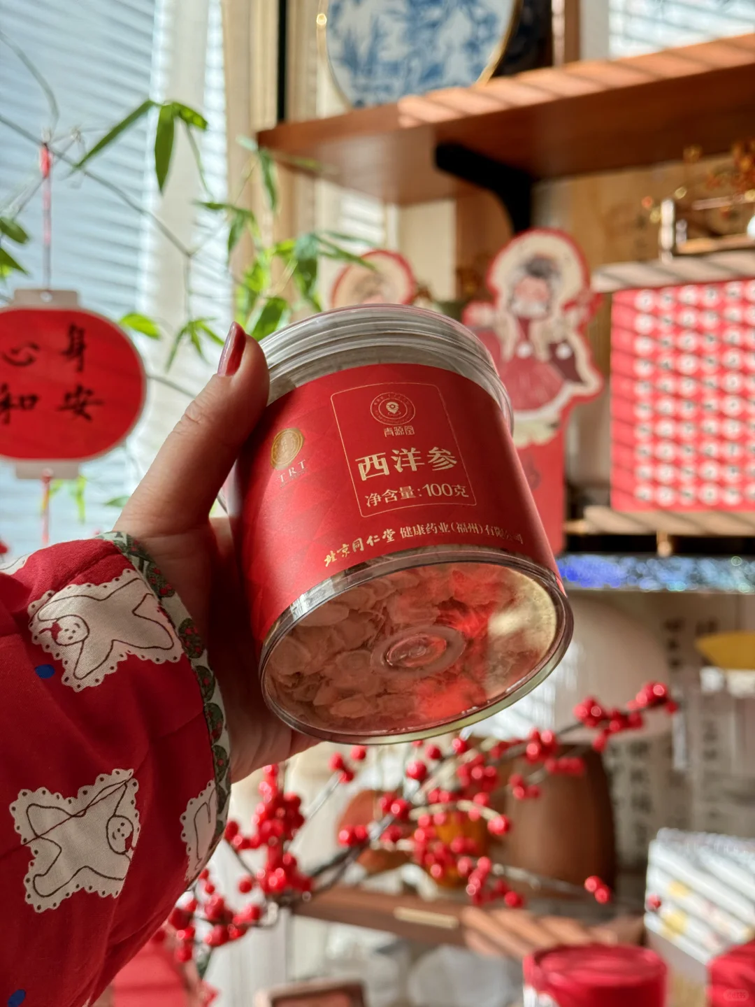 新年,红气养人,又上新招。 福字、手写对联、年宵花,火红的氛围一搭,心情开朗,精神头都足了。 气血养好了,红气自来。 养身,是一种生活方式,更是一种仪式感。养生的美是那种越来越耐看的漂亮,是由里而外健康的红气感。还没有靠近,就觉得这个人真美好。 自带泛发光彩感,这是我一直在追求的状态。 分享我的一些养气血小tips: 1⃣保持愉快心情。忧思伤脾,愤怒伤肝,增加自己的内核,书画、诗词、音乐、传统文化,以清为贵,得神为上,气和气缓为上。 2⃣避免熬夜。尽量早睡,保证充足的睡眠时间,冬天可以适当晚起,等到太阳出来后再起床,以避寒就温。保证每天有8-10小时高质量睡眠,有助于身体恢复和气血盈。 3⃣食疗温补。冬季人体是气内敛,血液循环相对减缓,补气血和补充蛋白质可以增强抵抗力。西洋参温和滋补,活性成分人参皂苷,能量补充,维护青春活力,增强体质。 4⃣适度运动。《黄帝内经》里讲:“冬三月,此谓闭藏。”冬天讲究闭藏,运动不要过早不要过度,反而会消耗气血,用按摩梳梳头皮,养生锤敲打八虚(胳膊肘弯曲的部位、腋下、大腿根部、膝盖窝),练习八段锦或散步等轻度运动。 5⃣减少过高温环境。每晚用温水泡脚,畅通气血祛寒温经。水温适中,泡至微微出汁即可,不要过多的汗蒸和泡温泉,过度出汗会消耗气血。 开始准备春节的礼品了。 春节当然需要准备一些礼品,给爸妈和长辈们在阿里健康大药房-滋补提前挑选了一些食疗温补品,特别是这款同仁堂西洋参片,选用长白山原产足龄老参的主根作为原料,纹理更清晰,没有任何杂质,参片大小均匀,每一片都又大又厚实。送礼送健康,养生实用又能体现我们心意。 阿里健康大药房买同款年货,大牌年货正品保障,趁着年货节优惠,提前挑选养生礼品吧!