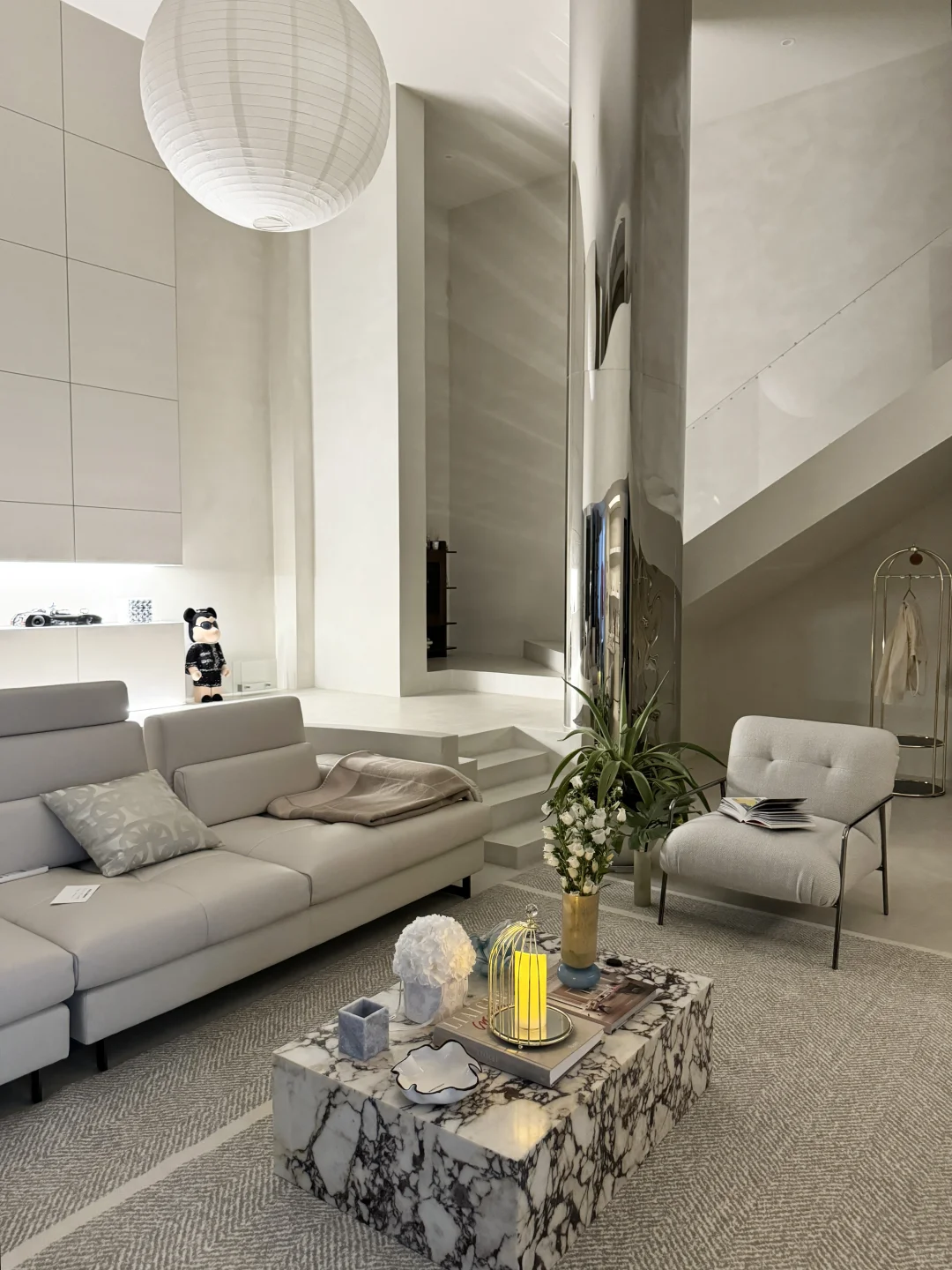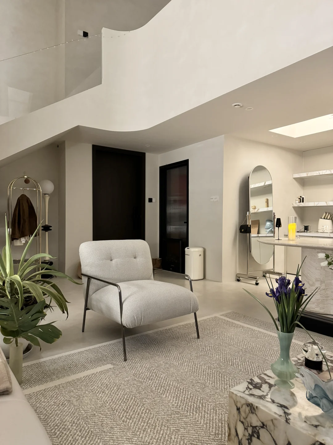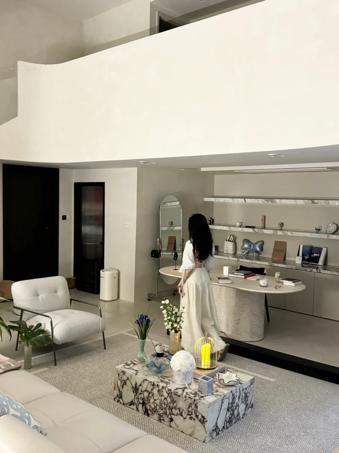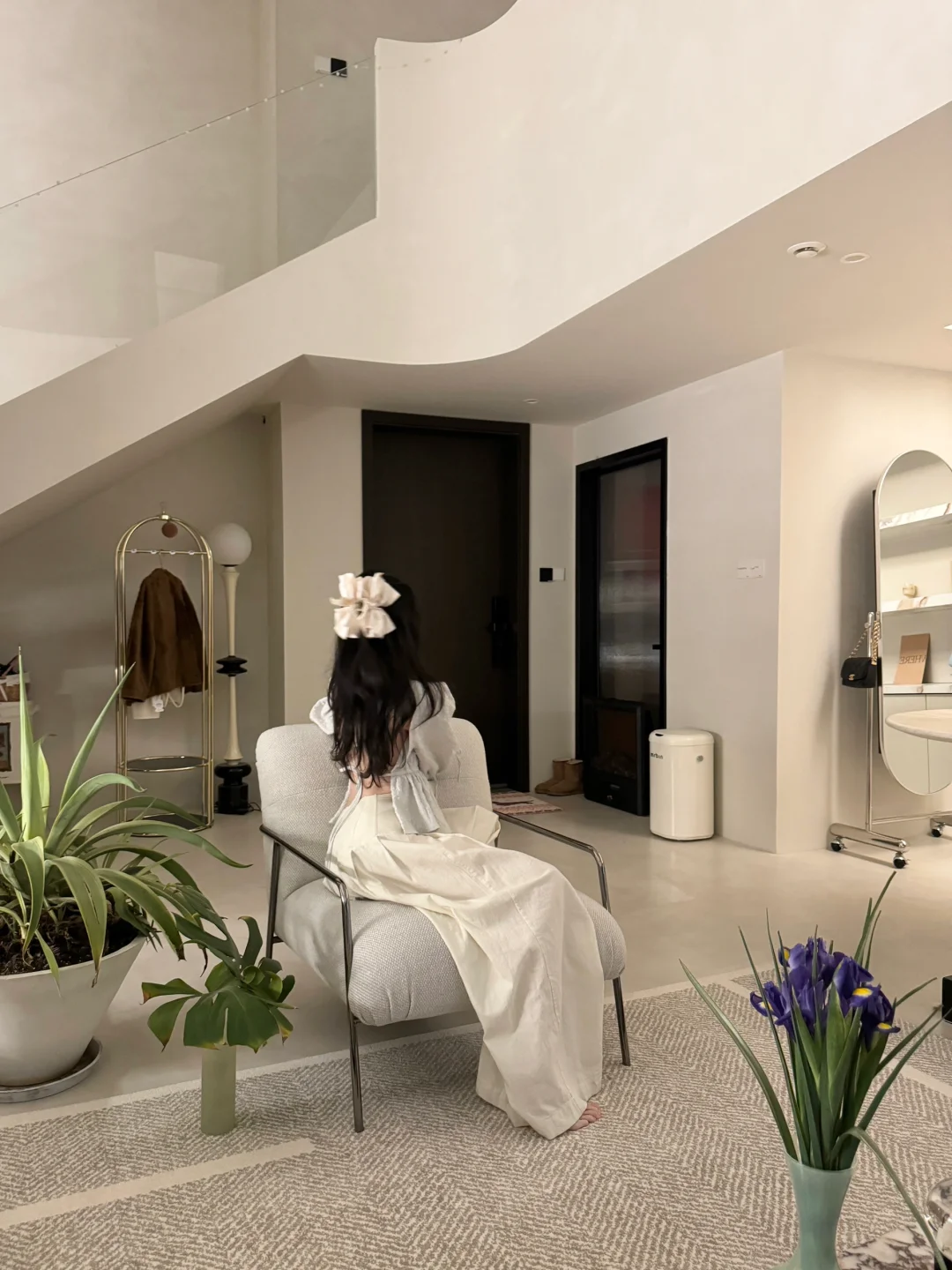 在温暖的地方过年度假 家里也布置了度假vibe🏝️ 白色系里搭配一点点蓝色 再添置一把单椅 反而更有层次和轻盈感 真的很奇妙🩵🐳 .