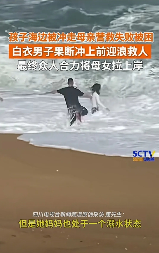 太帅了!1月30日,海南万宁,一女孩被海浪卷入海里,母亲去救孩子失败,自己也无法脱险,危险之际,一白衣长发男子出手了! 女孩落水区域是海天一色观景台海岸潮线危险区,目击者称当时看到海里漂着一个人,四脚朝天,他心想这下完蛋了,谁也救不了,孩子母亲不顾生死去救孩子,但浪实在太大了,自己也差点溺水,要是被大浪滚进海里,那全家都完了。 幸好,一长发小哥瞅准时机前去救人,一开始先把孩子妈妈给救上来了,随后又继续等待时机,等一个浪打过来,女孩被海浪卷近后,长发小哥瞅准机会,勇敢的冲上去抓住了孩子,最后在众人的支援下,小女孩被救上岸,白衣小哥累的都快虚脱了! 在海里,环境是不可控的! 长发小哥自己走的每一步都不确定自己能不能回来!但是,他做了,也做到了!留着女人的发型,干着最男人的事,一次性救了两人的命。 都说头发长,见识短,但这位白衣小哥却勇敢机智、临危不乱、意志坚定,但凡他有一丝的犹豫都不会下海救人! 为长发小哥点赞,也告诫游客们,风大浪大的时候不要下海,不要去危险的地方,安全出游是第一位的。