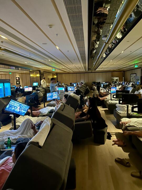🈶早餐&宵夜自助餐厅、🈶茶艺区、🈶虫洞休息区、🈶美甲区、🈶艾草盐蒸房、🈶干蒸桑拿房、还🈶配备KTV和餐桌的豪华套房……