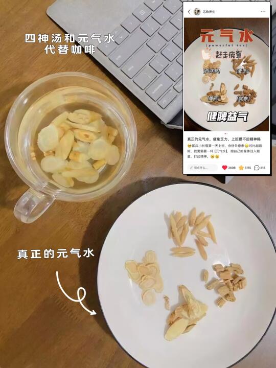 🍵元气水:党参、黄芪、麦冬、西洋参 各4g,之前笔记分享过,提神养气,恢复精气神(已经快w人赞藏了,大家快去试试)