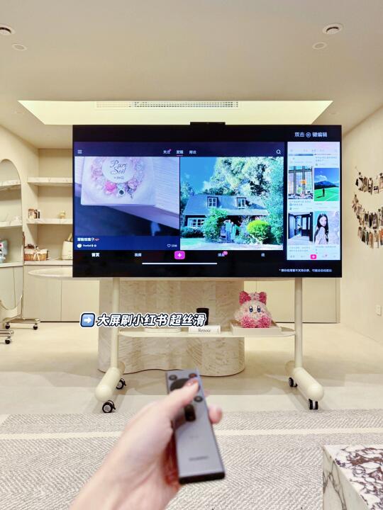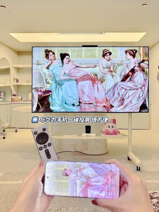 hi 想知道大家宅家的乐趣是什么 是躺平睡觉 看书画画 或者宅家追剧呢 对我来说 每天最期待的就是 晚上轻松愉快的观影追剧时刻 之前在朋友家做客 看到他家电视是华为智慧屏 居然可以像玩手机一样灵活操作 屏幕观感也很不错 像我这种追剧爱好者 就很心动种草 决定换台电视啦~ . 终于收到了心心念念属于全家人的大玩具 ——华为智慧屏 让家人体验一下科技对生活方式的改变 安装好放我家客厅 极简科技感的外观还挺高级的 体验下来感觉惊呆了 不得不感叹科技改善生活啊 迫不及待来给大家分享下 ! . 首先操作起来真的很方便 可以使用华为灵犀指向遥控远程在屏幕上实现滑动、点按、拖拽、圈选、跳选等手机上才有的操控体验,就和平时操作手机的体验差不多 简直就是一个“巨幕手机” 为什么说它是“巨幕手机”呢? 不得不提它的超级桌面功能 在同一wifi下,无需在智慧屏上二次安装 手机上的应用就可以直接同步到大屏 配合着灵犀指向遥控,无论是刷购物网站还是点外卖 这种感觉就像任督二脉都打开了[哇R] 真正感受到了先进科技感走到生活里~ . 我现在连刷都用智慧屏了 大屏刷着简直不要太爽,拯救脊椎行动! 我家楼下是一家人的娱乐空间 平时都喜欢在这追剧看电影 因此我们对观影设备清晰度和色彩表现要求很高 华为智慧屏配备了“鸿鹄画质”色彩更真实 同时它的鸿鹄护眼,经过德国莱茵低蓝光认证 也让我放心不少,保护眼睛从娃娃抓起 . 特别是鸿鹄AI精晰技术 无论是看电影、纪录片、动画片或是日常追剧 它的画质无比细腻 清晰流畅 人物的发丝、小动物身上的绒毛都能清晰可见 在家里就像在沉浸式影院 观影体验超棒 . 喜欢它的一碰投屏 懒人超爱 华为手机和遥控器轻轻一碰 手机上的小屏直接变大屏 这就很方便 像我平时喜欢看一些电视上片源较少的美剧 直接用手机投屏到智慧屏上 还有它的超级投屏功能,只需要在手机端开通小屏会员 就可以直接享受超清4k画质 追剧起来更舒畅啦 好好好 有了这个大玩具 每天在家更不舍得出门了~