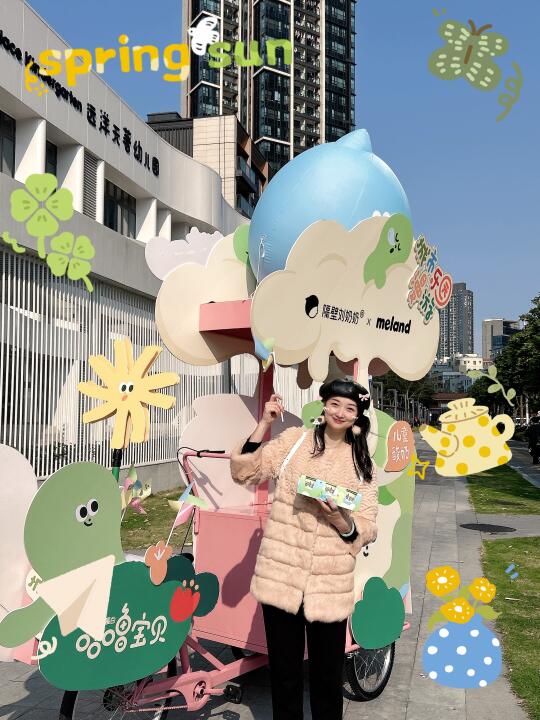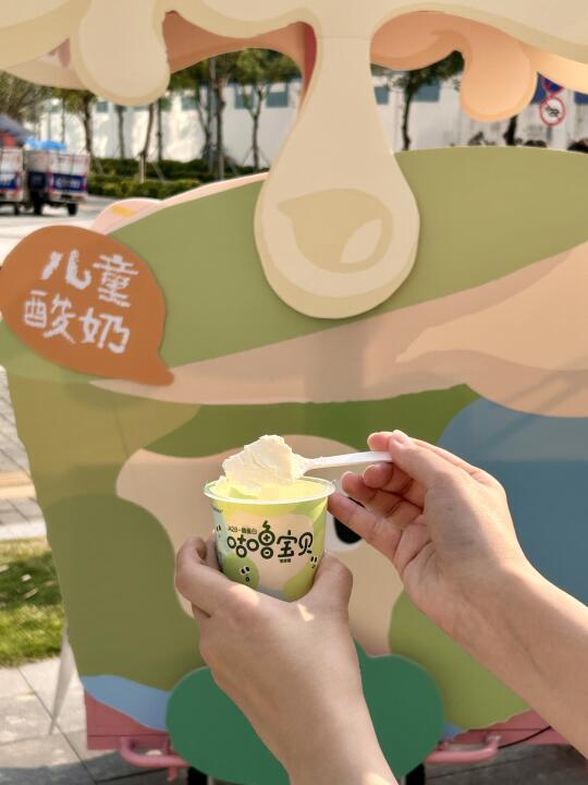 不仅酸奶品质好,酸奶车的颜值也高,这也太春天了,不仅有好喝的免费酸奶,还可以来拍拍拍与超出片的牛牛溜溜车合影,做朋友圈最靓的崽~