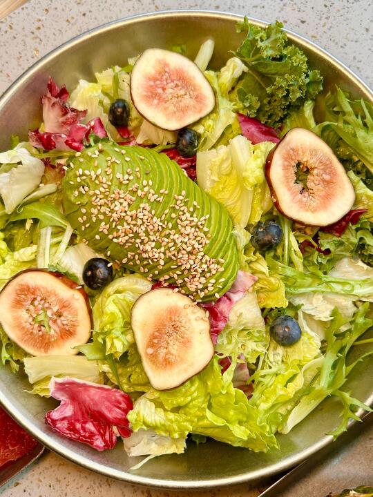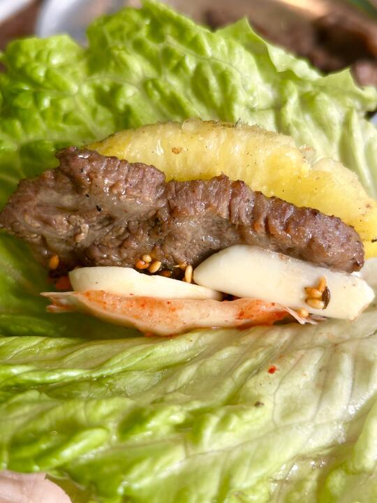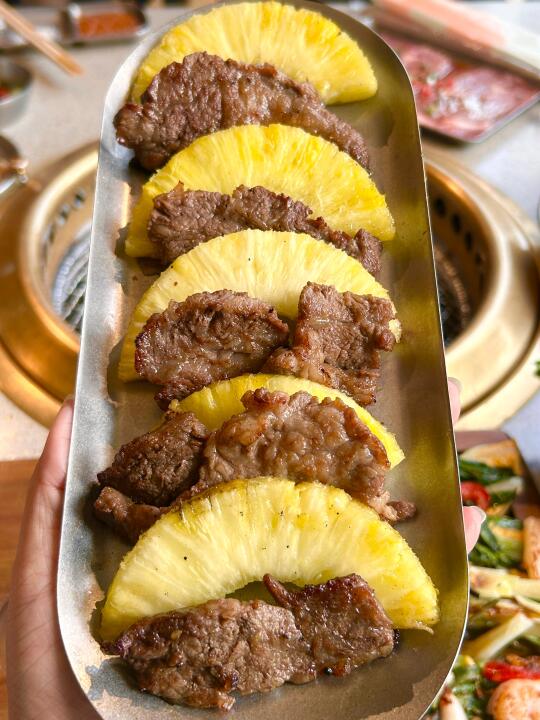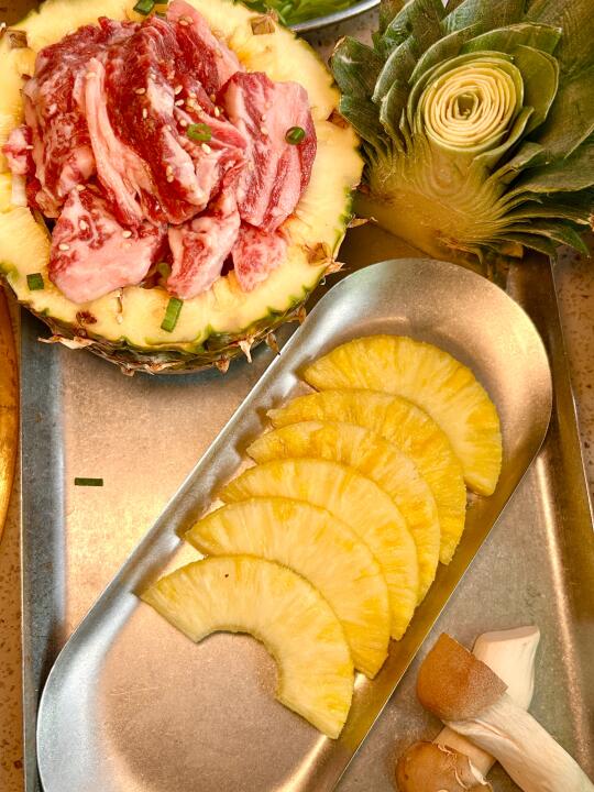 蚂蚁洞烤肉[搜索高亮]有趣、好玩、松弛、自在 放下焦虑,尽情享受这一刻的欢愉吧! ⭐️牛油果沙拉:各种新鲜蔬菜搭配上牛油果🥑、蓝莓🫐和无花果,端上桌就是一件艺术品📷。再浇上灵魂料汁,保证一吃一个不吱声😋 ⭐️菠萝牛肋条:整个菠萝🍍装满牛肋条端上来,造型新颖独特,瞬间就被吸引🤩。生菜🥬包着现烤的牛肋条+菠萝,再蘸上秘制蘸料,一个字“绝”👍