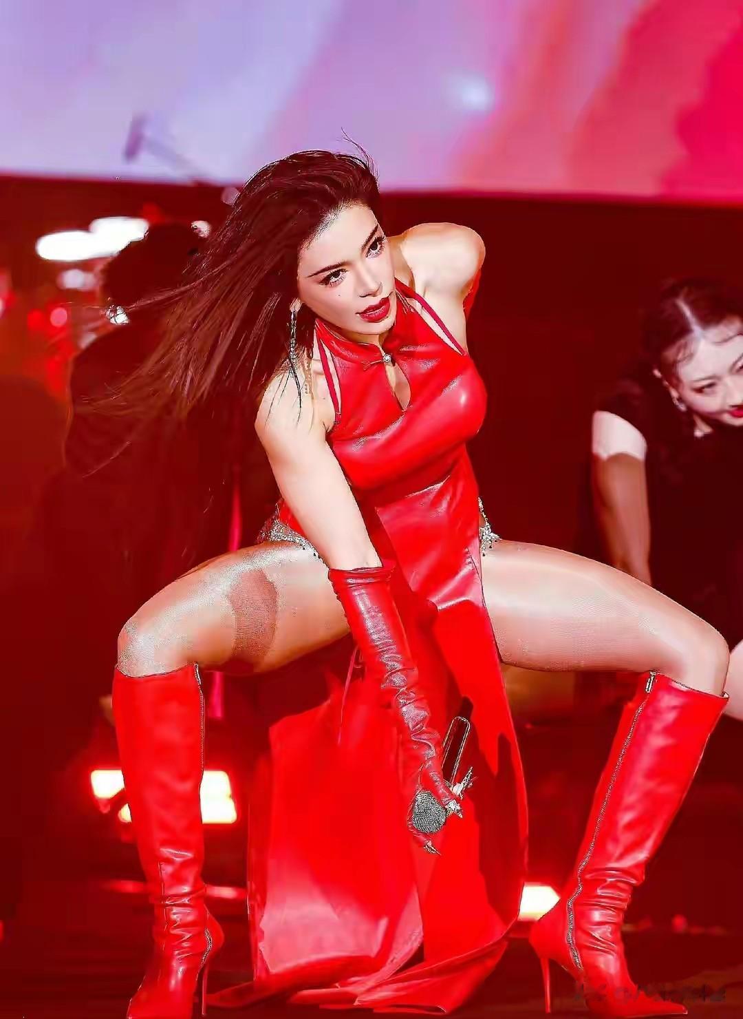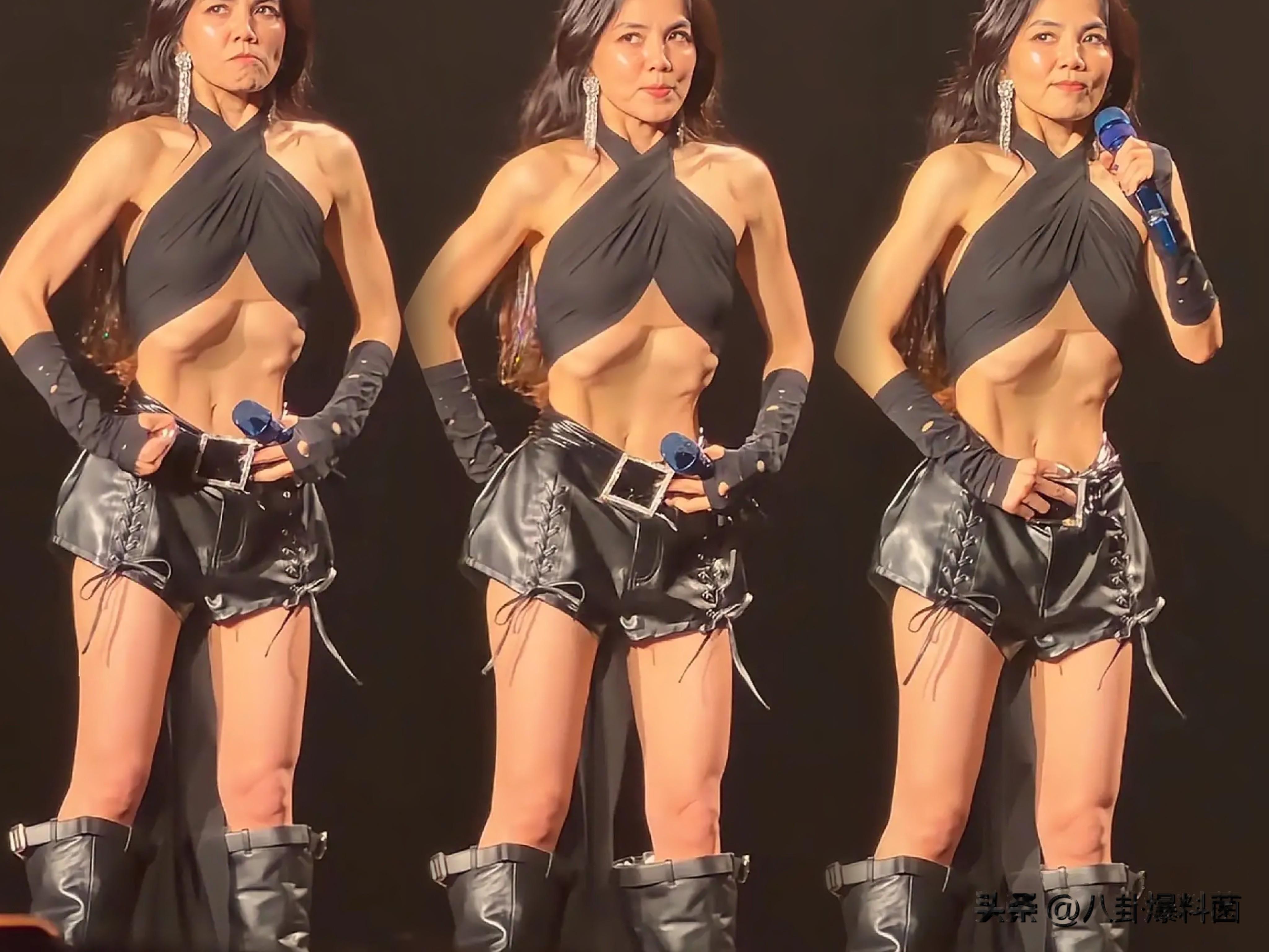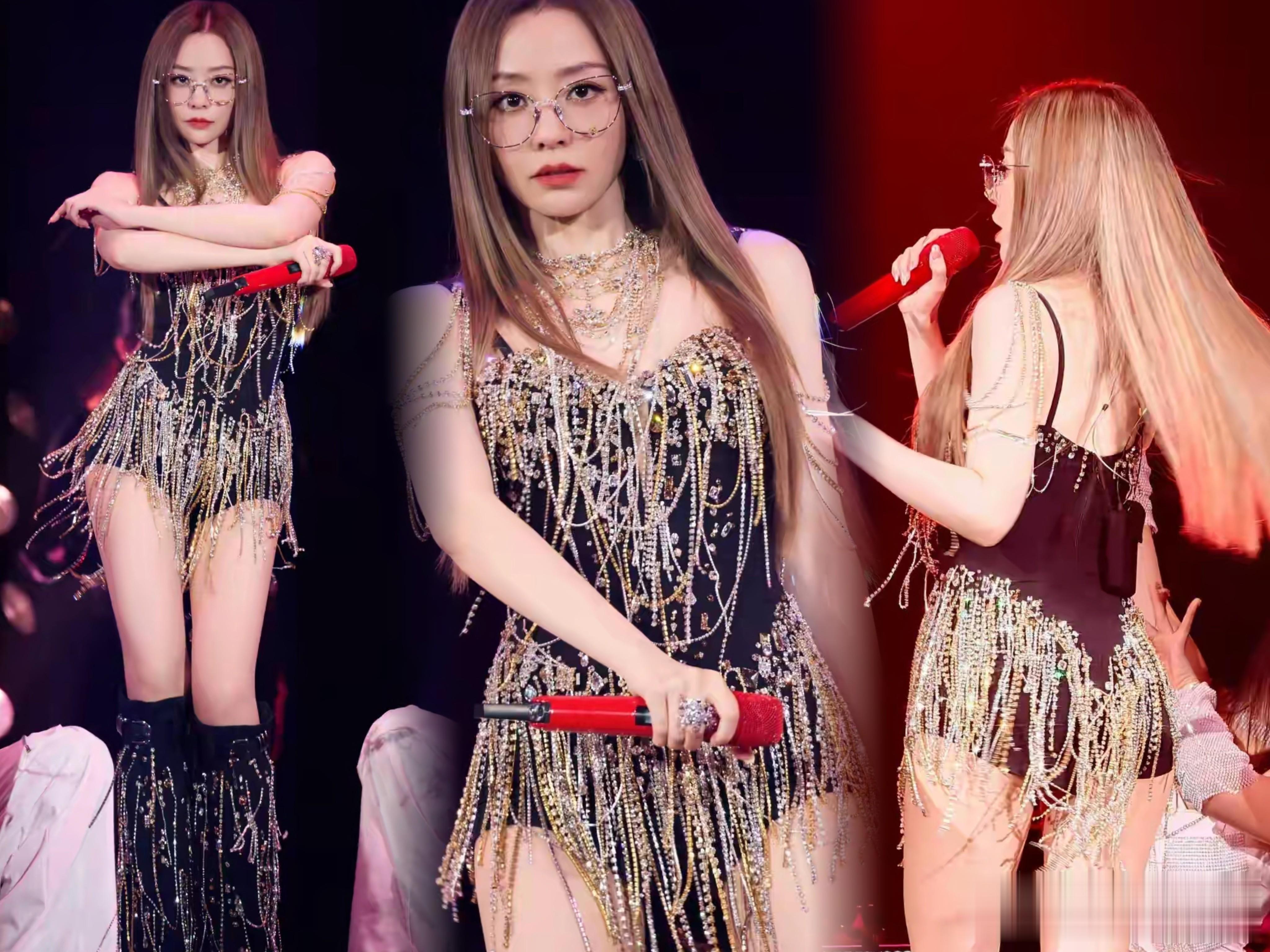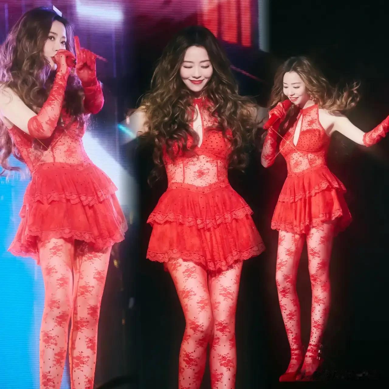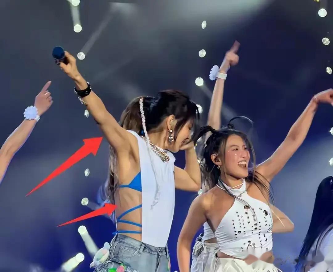 但她对演出服的穿搭,也真的是算豁出去了,明明没有力量感十足的身材,但还是把演出服穿到了擦边感当中去。