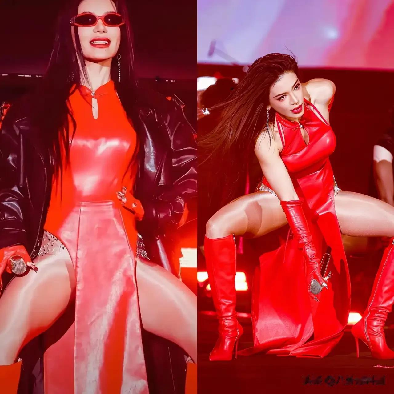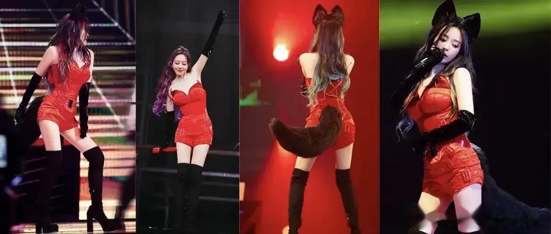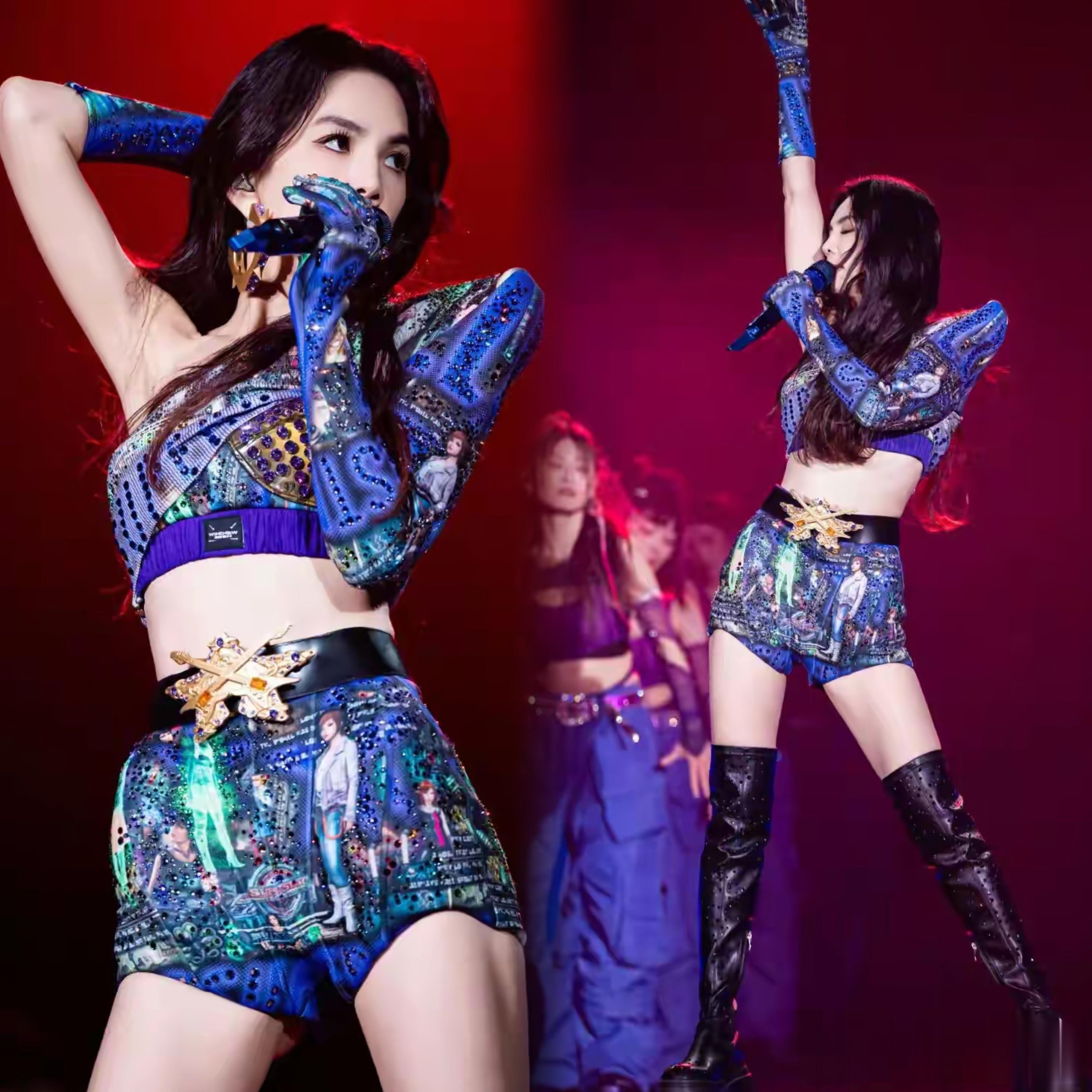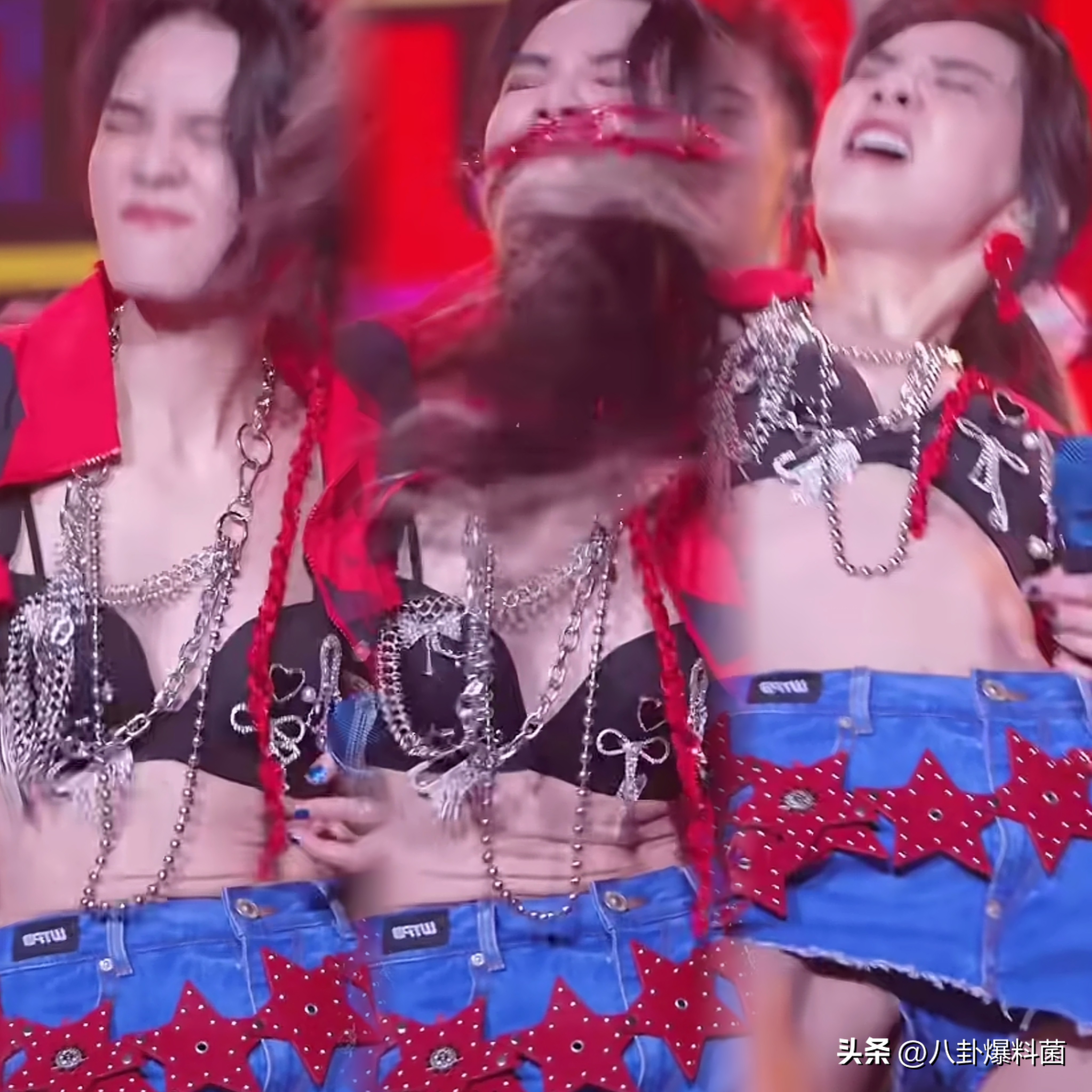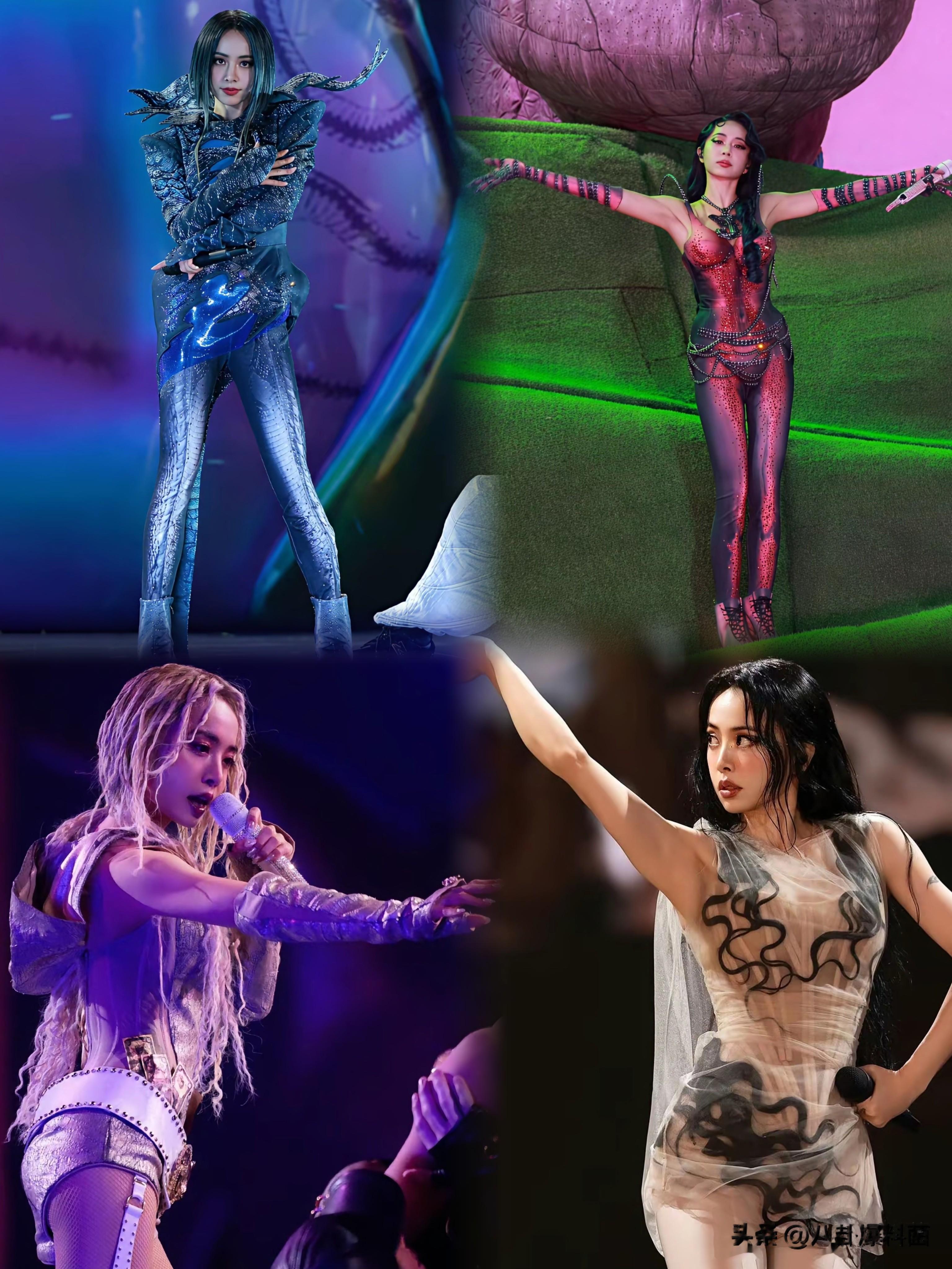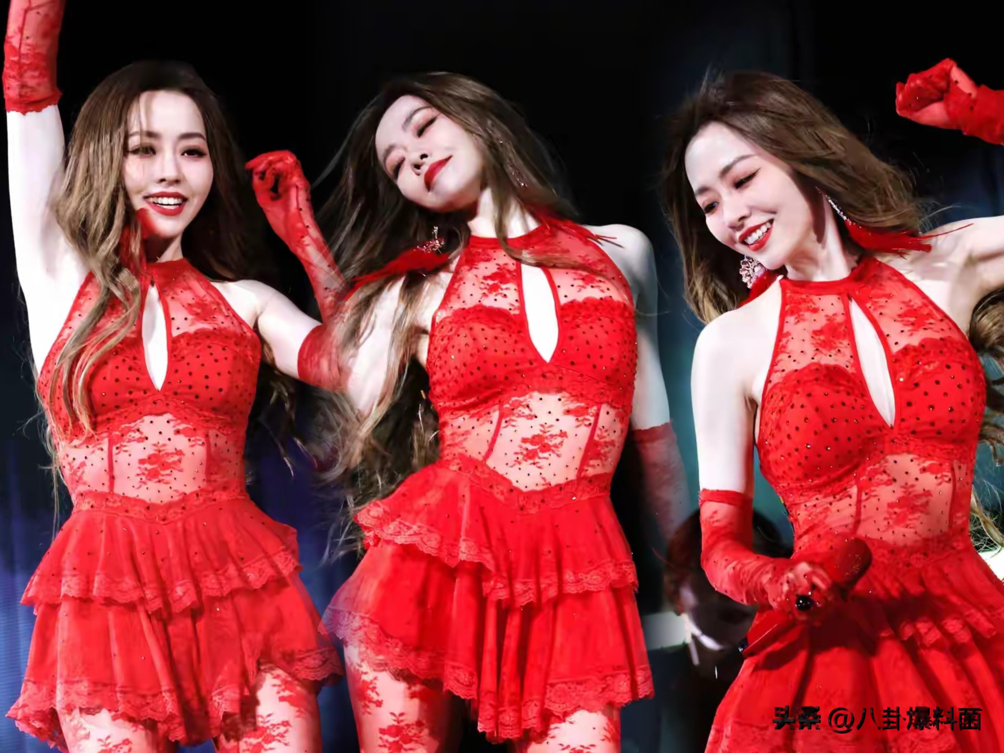 但她对演出服的穿搭,也真的是算豁出去了,明明没有力量感十足的身材,但还是把演出服穿到了擦边感当中去。
