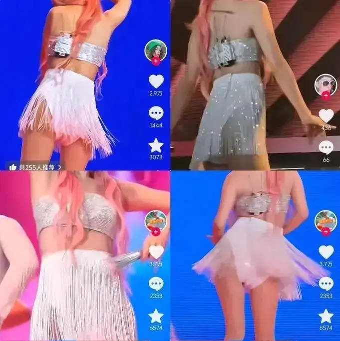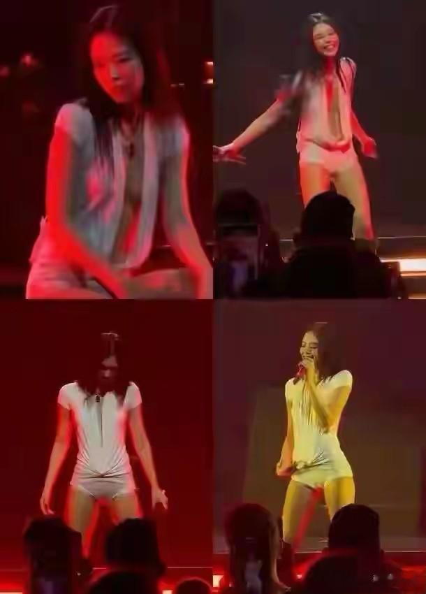 她的演出服也开始逐渐走偏,虽不及Lisa大胆,但却也不相上下。