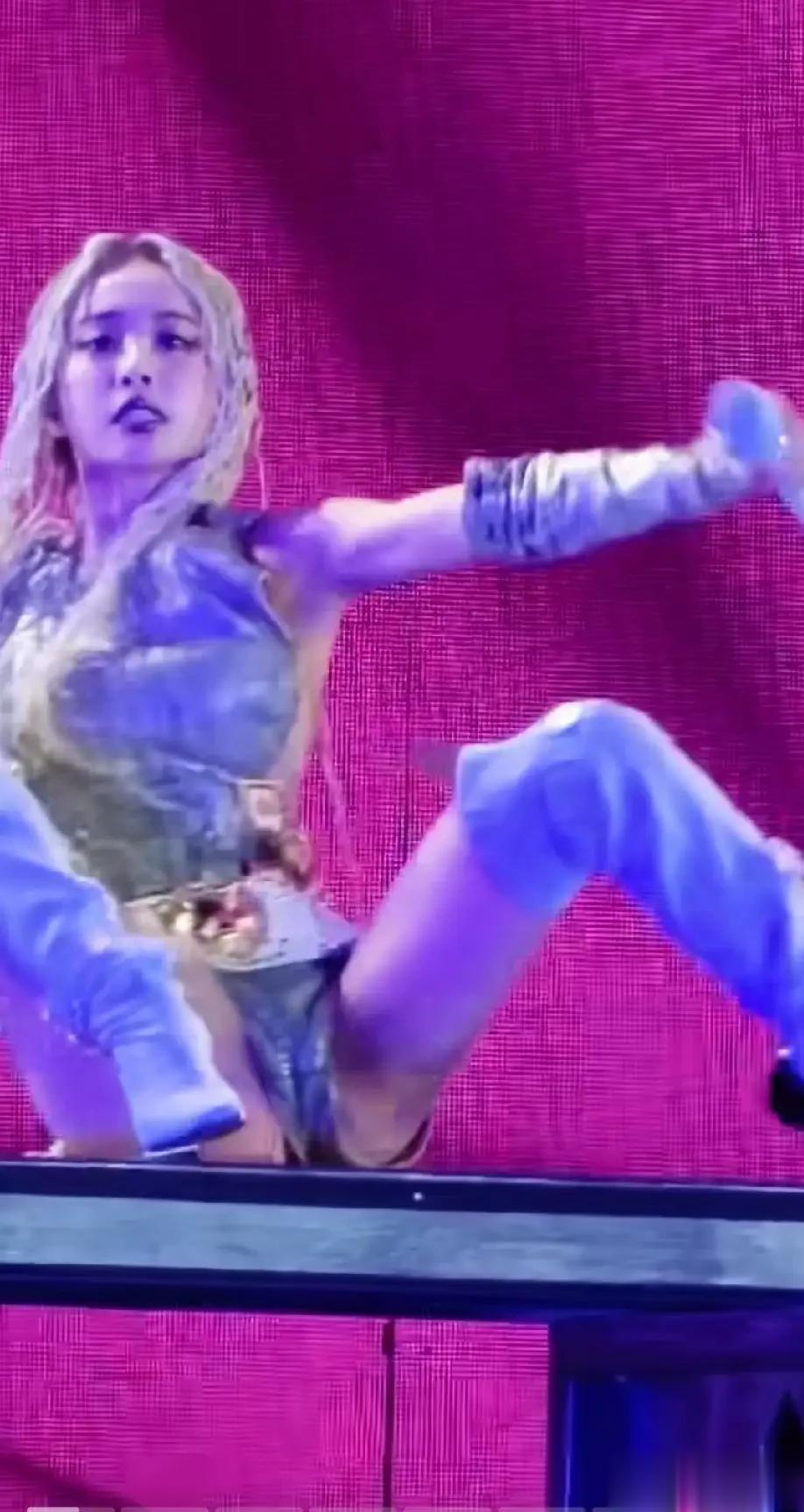 jennie也在台上尽情的挥舞着自己,丝毫不在意是否会走光。