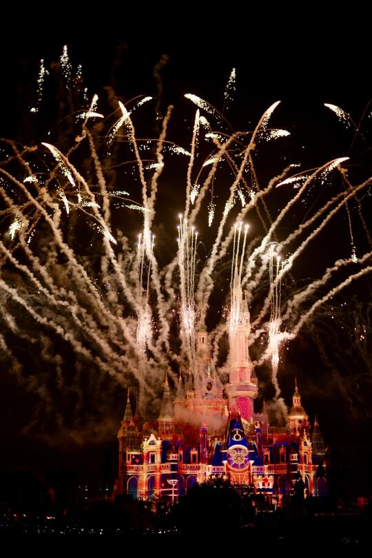 花车巡游提前半小时占第一排、米奇妙游童话书看的最后一场戏,出来对面就是烟花秀最佳机位,提前一小时去占位。