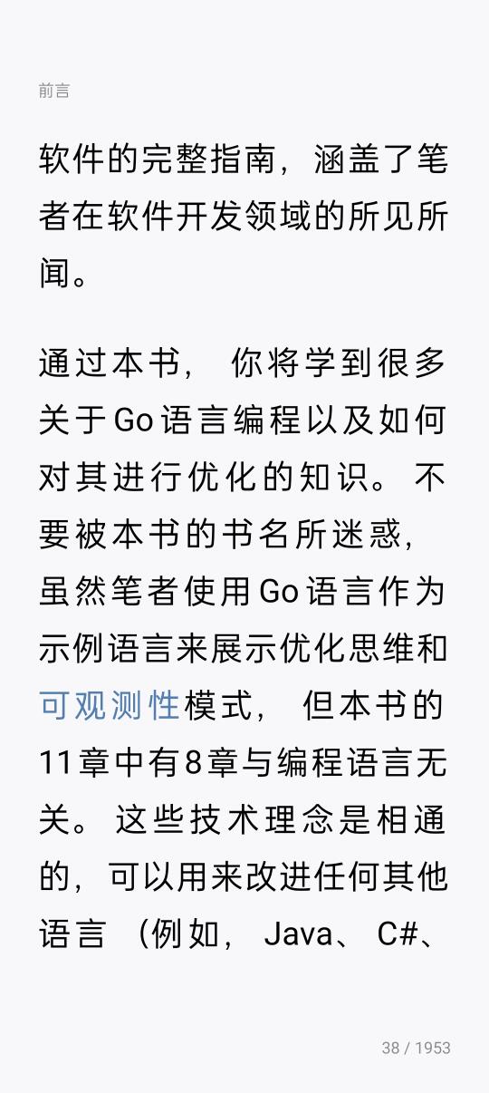 虽然技术在进步,硬件也越来越物美价廉,但如今软件工程师仍需要关注程序的性能优化。 本书将介绍软件效率问题、Go语言快速入门知识、如何实现高效编程,告诉大家如何高效进行性能优化,以及何时进行,并给出需要的工具和相关知识,让你使用较少的资源实现高效编程。