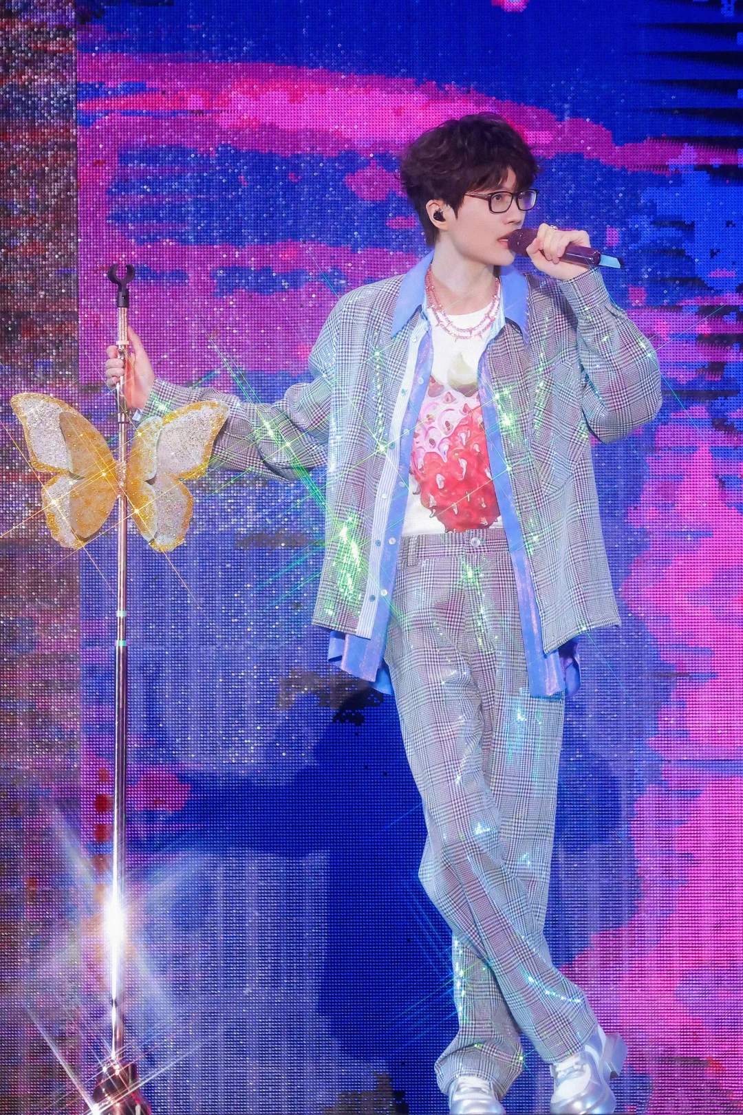🔷 昨天呼吸之野 洛陽演唱的這套look搭配了我之前「玊」系列「青綠色滿底亮片格紋套裝」和最新系列「內搭藍紫色流光襯衣」 💙首圖真的好美,空靈又優雅,阿阿阿救命,真的好帥呀! 💙圖6圖7大合照 💙2~5圖片來源/恩怨_各一半