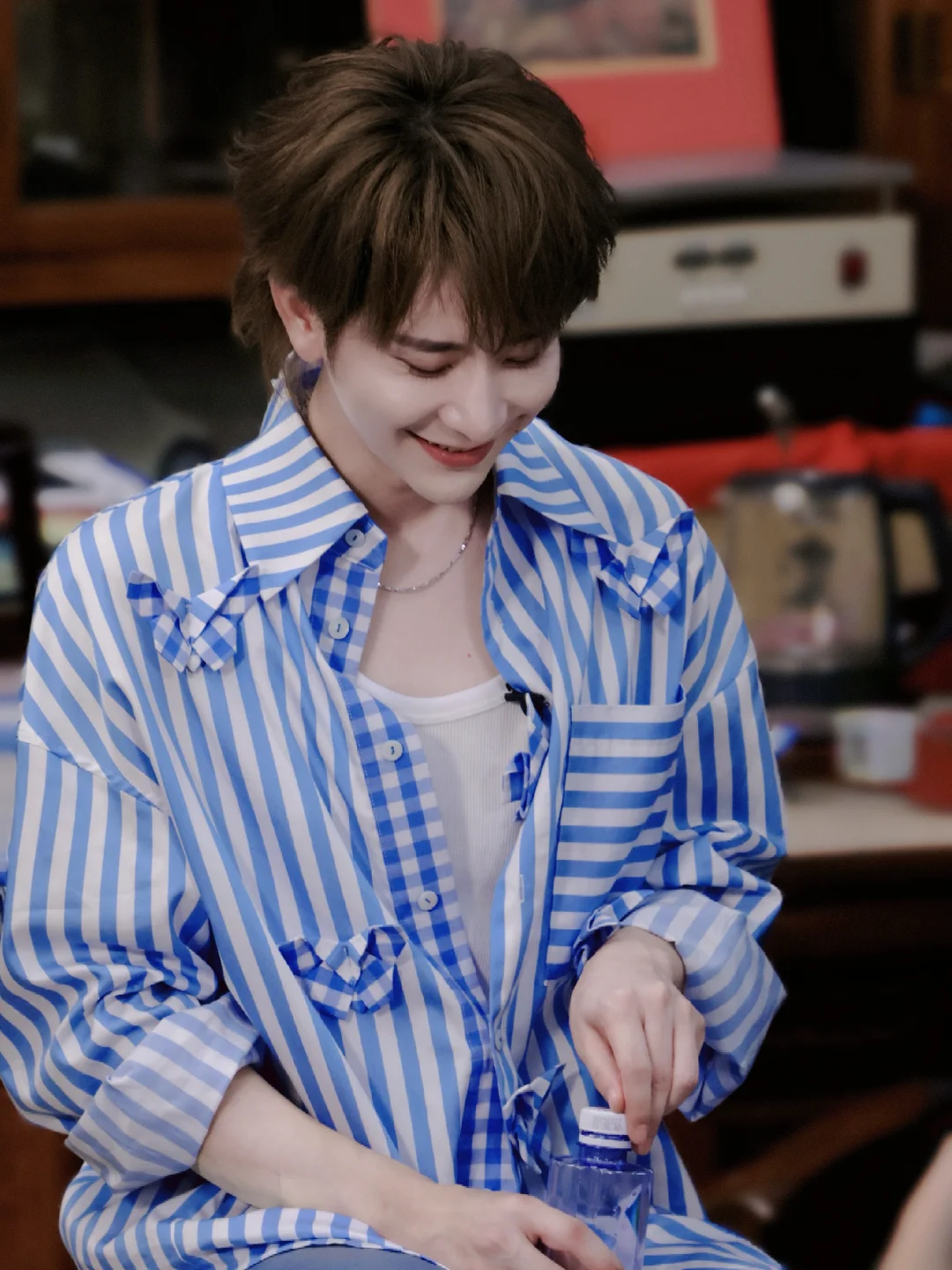 🔷蘭天奇身上這款襯衫來自前不久出的市售款,折紙蝴蝶用裁剪衣服的邊角料製成,既可當做裝飾,又減少浪費,,就是有點麻煩,哈哈哈,因為用邊角料做飾品,需要一片一片去對位,不能批量,,