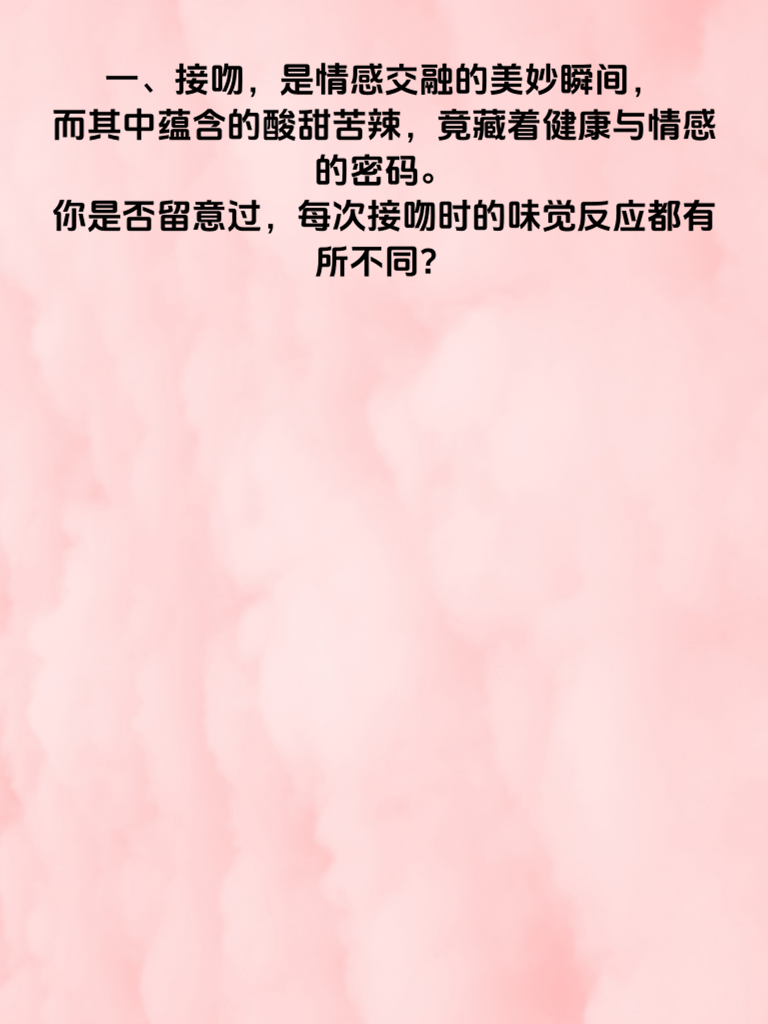 一、接吻,是情感交融的美妙瞬间,而其中蕴含的酸甜苦辣,竟藏着健康与情感的密码。你是否留意过,每次接吻时的味觉反应都有所不同? 二、甜,或许是最令人陶醉的滋味。当甜蜜涌上舌尖,不仅是爱情的升温,还可能暗示着彼此身心的愉悦。研究表明,愉悦的情感状态有助于增强免疫力,让我们更健康。 三、酸,有时会悄然出现。这可能源于紧张、羞涩,或是身体某些潜在的小状况。它提醒我们,情感并非总是一帆风顺,需要我们用心去调适。 四、苦,偶尔也会搅乱这份美好。可能是近期生活的压力,或是彼此间的小摩擦。但别担心,这也是情感磨合的一部分,能让我们更加了解对方。 五、辣,那瞬间的刺激,如同爱情中的激情火花。它能点燃彼此的热情,让心跳加速。不过,也要注意把握度,别让过度的火辣掩盖了情感的本真。 六、从接吻的味觉反应中,我们能读懂健康信号,更能洞悉情感的微妙变化。用心感受,用爱回应,让每一次接吻都成为情感升华的契机,解锁属于你们的甜蜜与成长。