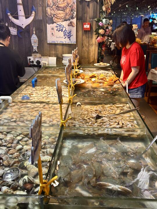 哇哇哇!在深圳居然用百元就能吃到海鲜自助餐 吃货们~赶紧冲哇!!!🐛🐛🐛 各种海鲜不限量♾️生蚝🦪、鲍鱼、基围虾🦐任吃 各种三文鱼🍣刺身现切现拿,想吃多少拿多少! 重点是还有现开现吃的榴莲随便吃,甜过初恋🥹 还有各种熟食🥩甜品🍧水果🍉真的多到拿不完! 🏠Fresh领鲜海鲜自助餐厅 🈺业时间:11:00-22:00 📍东门步行街鸿展中心城3楼(太阳百货东门斜对面) 🚇老街地铁站D、E出口