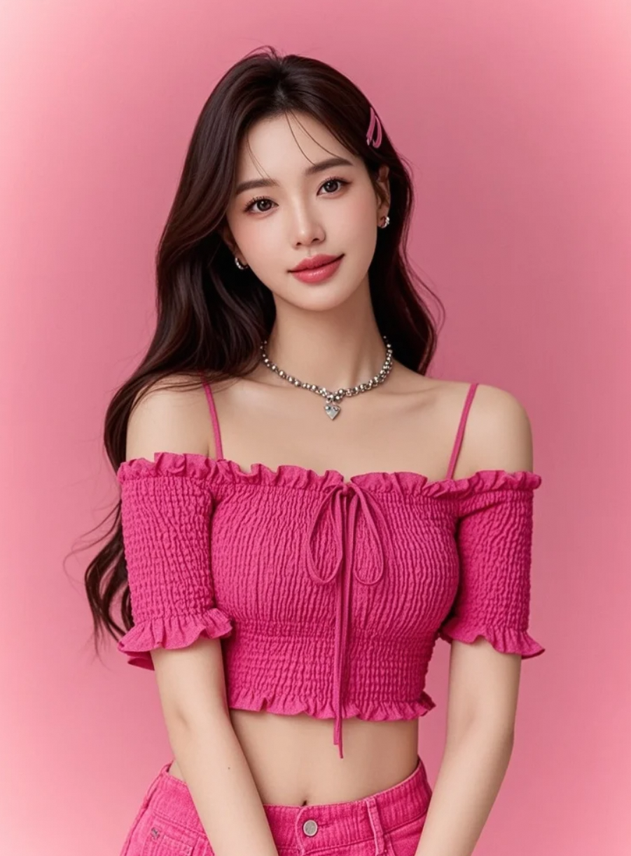 她穿粉色的那一瞬间,时间都静止了