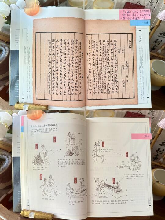 陆羽所归纳的茶艺法则、工具、工艺、工序等,丰富的配图解说器皿和工艺,汇总了部分茶文化的古文学诗词文章。