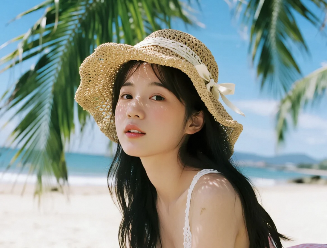 海天一色,佳人笑靥如花绽