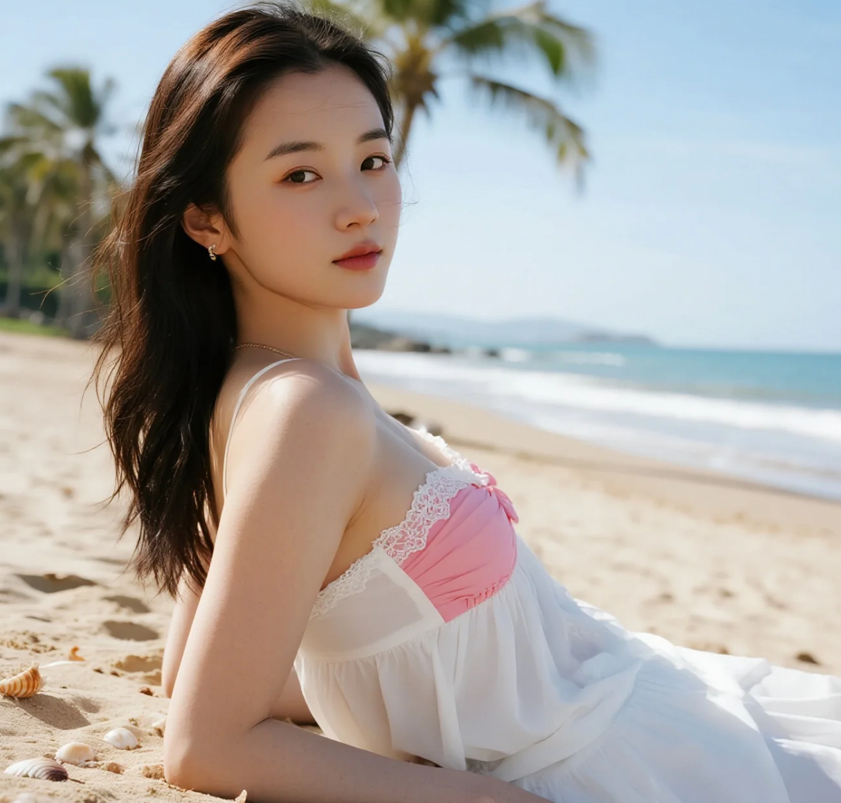 沙滩留影,风华绝代惹人怜
