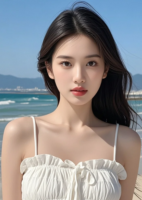 海天一色背景下,美人更显出众