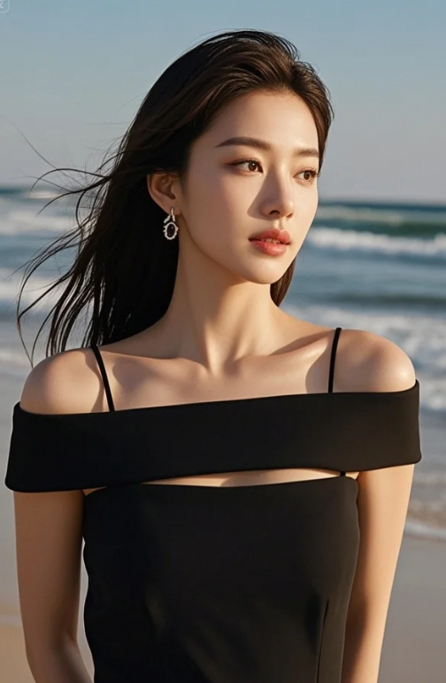 海天一色背景下,美人更显出众
