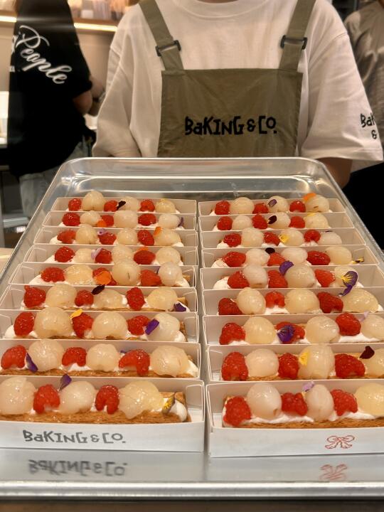 ⭐️荔枝苹果拿破仑:整颗的去核荔枝装饰在面包上,一口下去,冰凉爽口,甜而不腻🥰