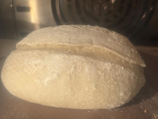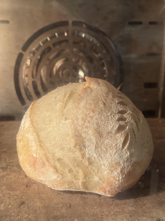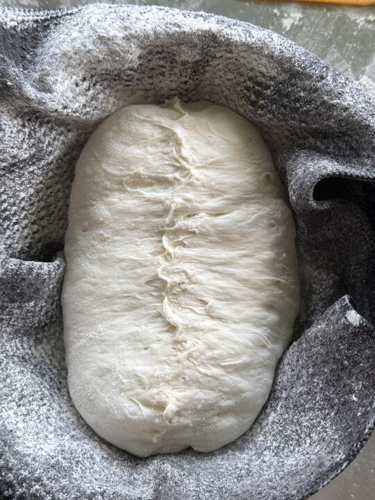 偷懒也能获得大气孔欧包 面粉👉王后日式面包粉 波兰种上午11点准备的 50克王后面包粉+50克水+1克鲜酵母(⚠️是鲜酵母) 空调房26度发酵三小时到体积膨胀2-3倍 下午1点把主面团揉成团放冰箱冷藏水合 主面团160克王后面包粉+130克凉水 一小时后从冰箱取出加入全部波兰种打到八成筋 加入4克食盐继续搅拌至完全扩展 案板上喷水,放上面团拉升摊开之后折叠收方入盒 之后只要看到面团开始塌就手上抹水进行四折叠 刚开始的时候我大概15分钟折一次,折了三次 三次后每25分钟折一次,也折了三次 具体折几次还得看面团的状态 按压是很饱满的充气感之后就不用再折 面团上以及案板上刮板上撒上多多的面粉准备收包 收好之后入篮冷藏俩小时 晚上八点放冰箱冷冻室定型 晚上八点半烤箱预热魔笛手食谱 我用的魔笛手E60pro,放入石板 上下火240度预热半小时 半小时后把割好口的欧包放入,喷蒸汽三次 上下火模式240度烘烤15分钟后215烘烤15分钟 之后改为风炉模式215度烘烤五分钟做最终上色