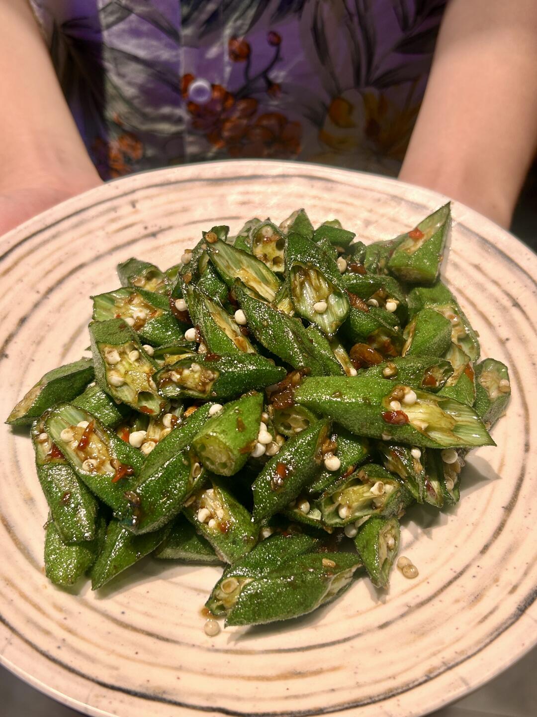 ⭐️三巴酱炒秋葵:第一次发现秋葵可以这么入味,一点都不涩口,非常好吃,一定要试试✔️